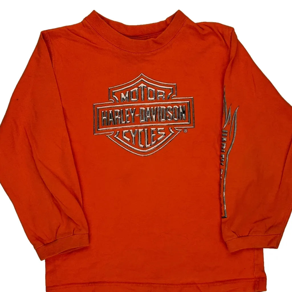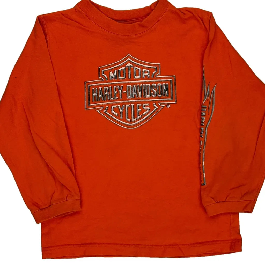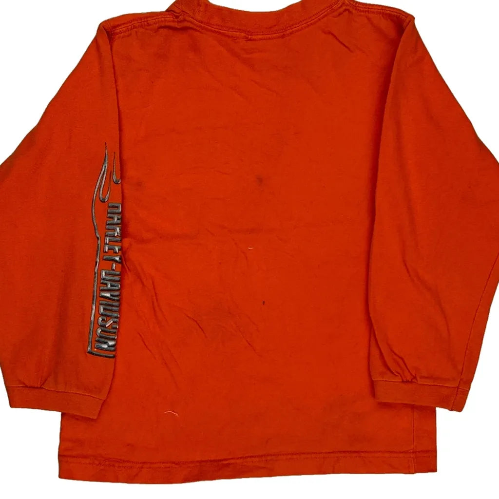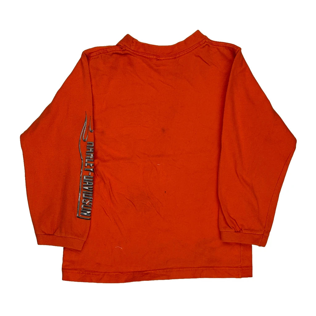 Age 7 Harley Davidson Graphic Long Sleeve T-Shirt - Medium Orange Cotton