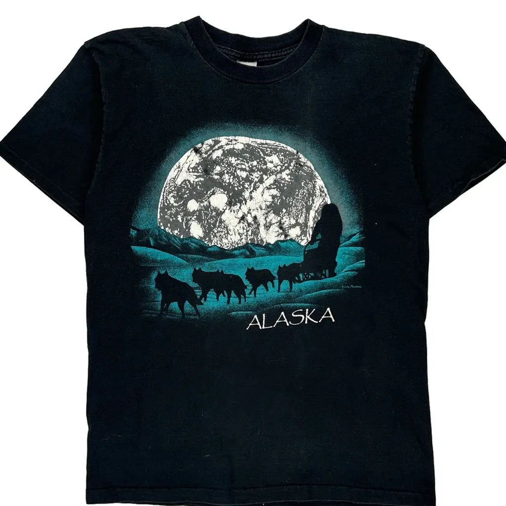 Alaska Graphic Print With Wolves And Moon