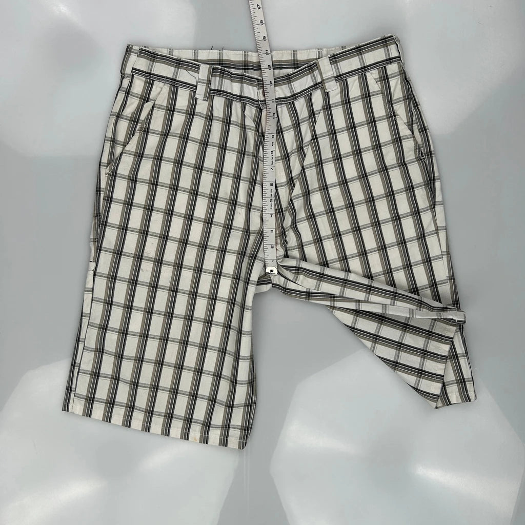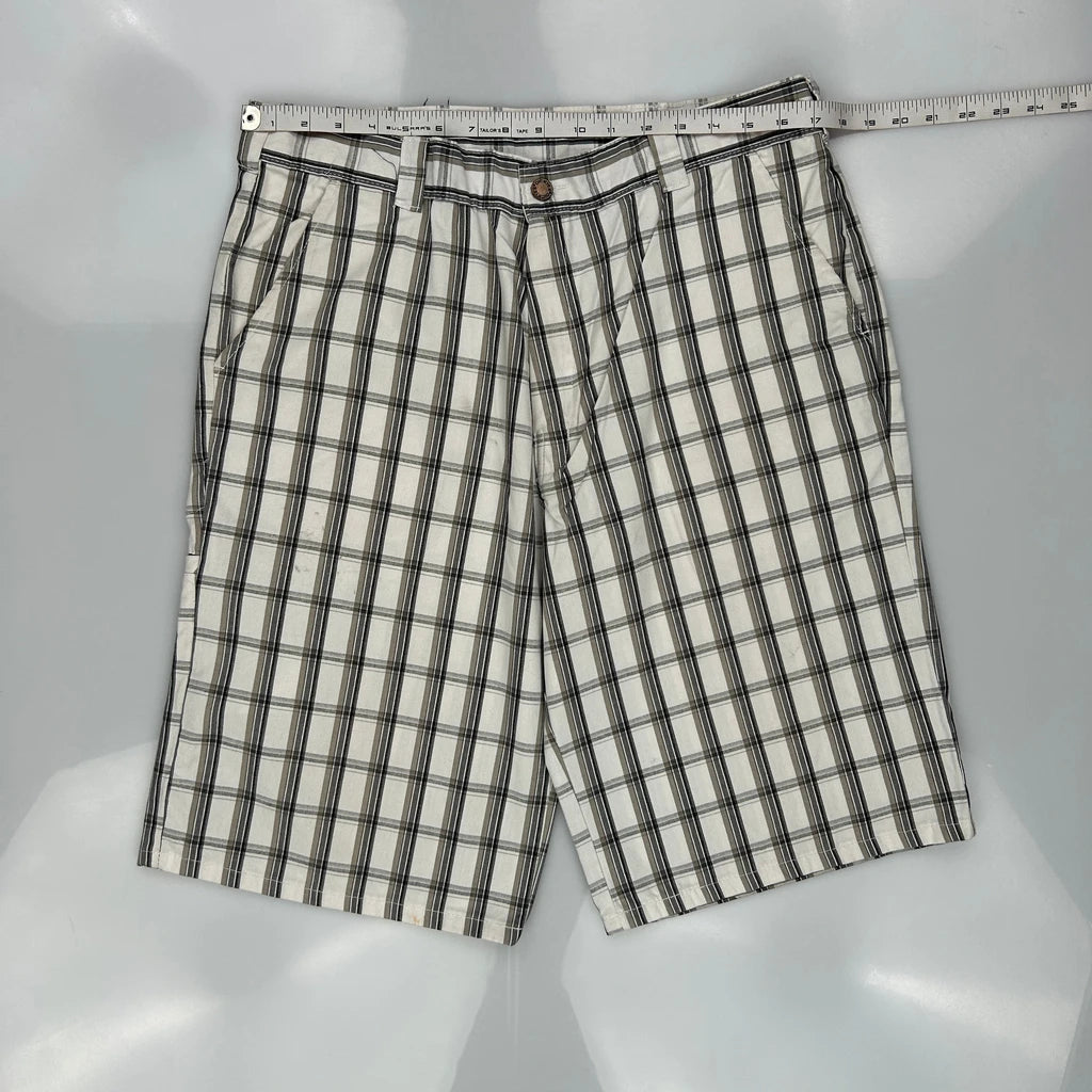 American Eagle Checked Shorts - 36W 10L White Cotton Blend