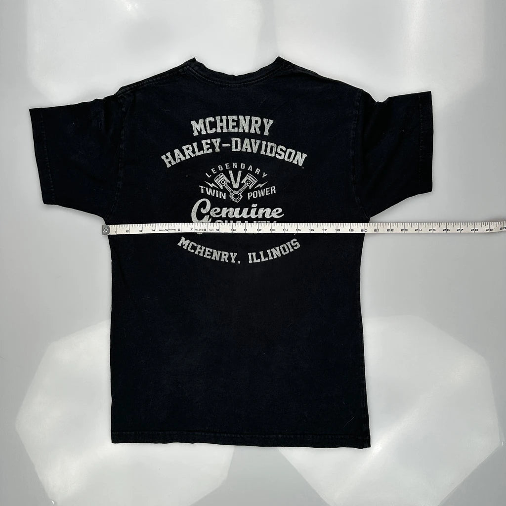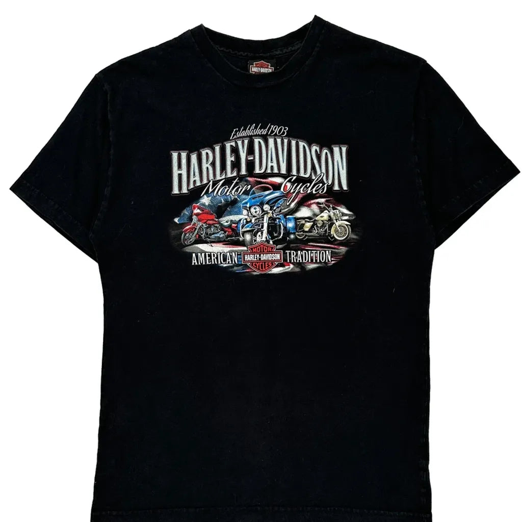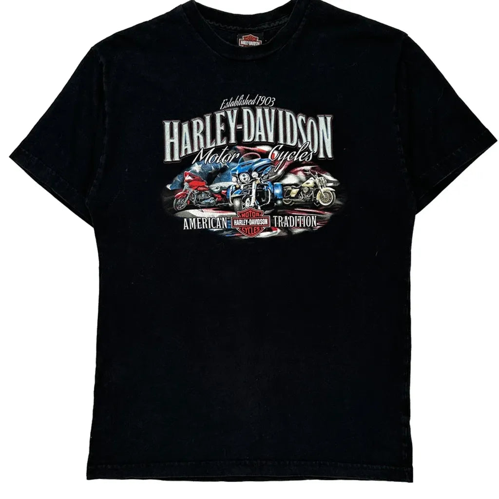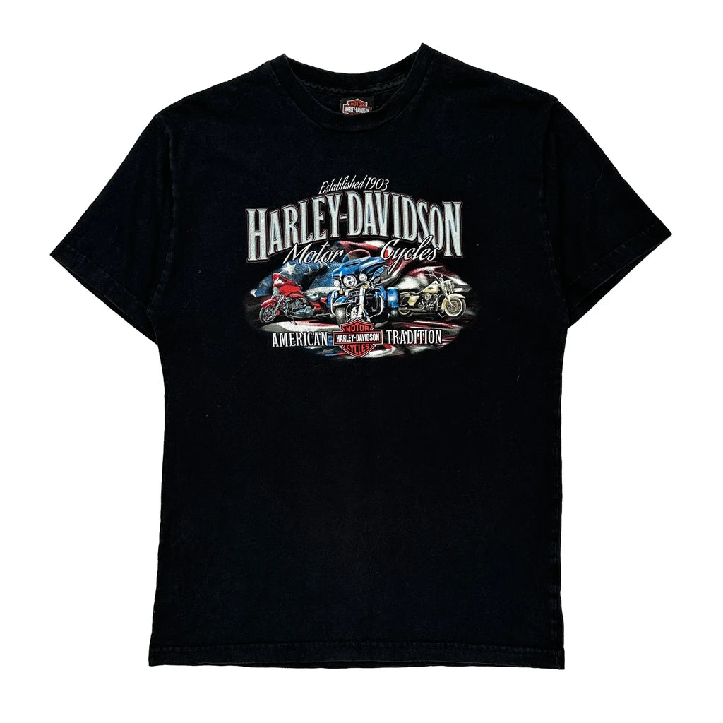 American Tradition Harley Davidson Graphic T-Shirt - Medium Black Cotton