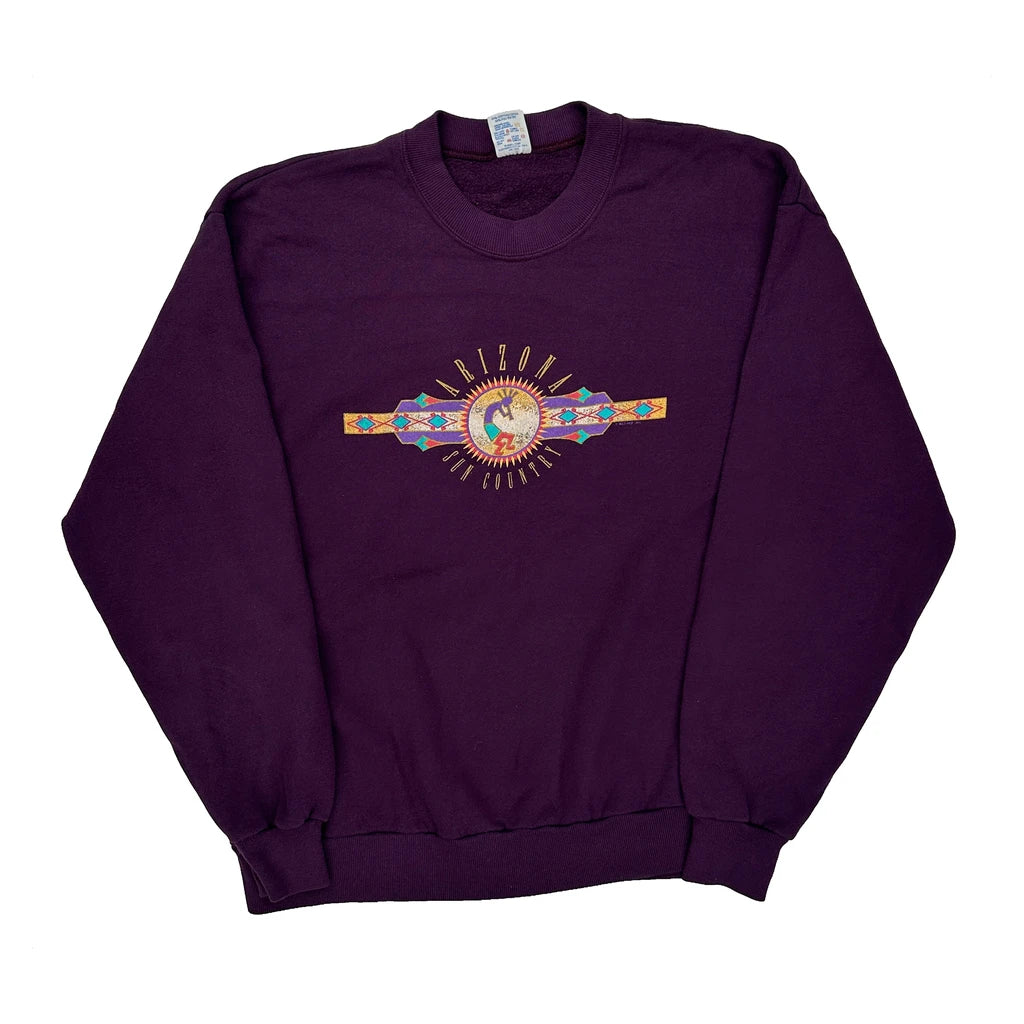 Arizona Sun Country, Made In USA Jerzees Graphic Sweatshirt - Large Purple Cotton