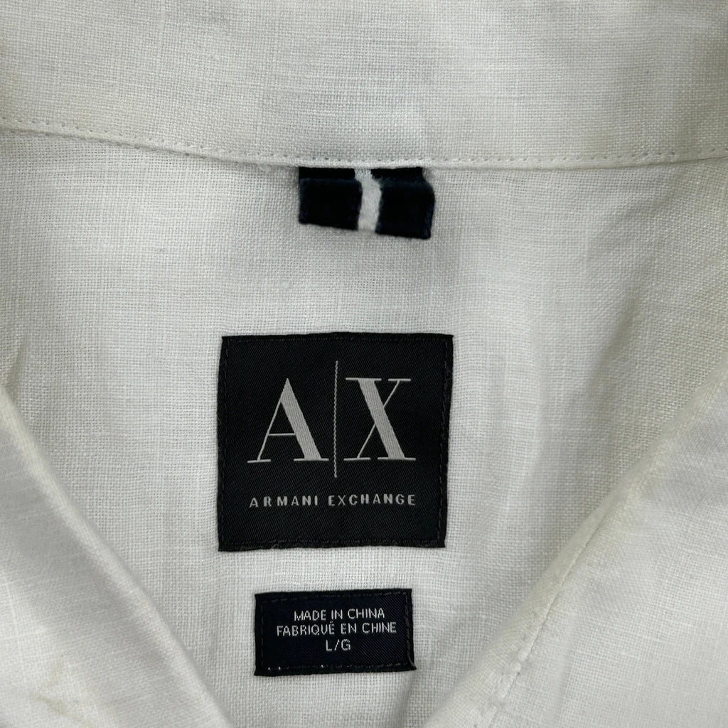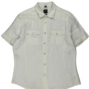 Armani Exchange Short Sleeve Shirt - Large White Linen