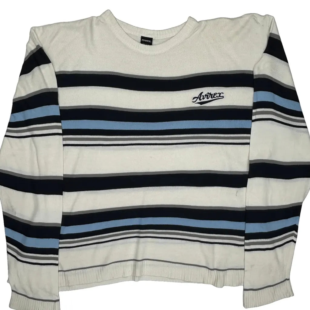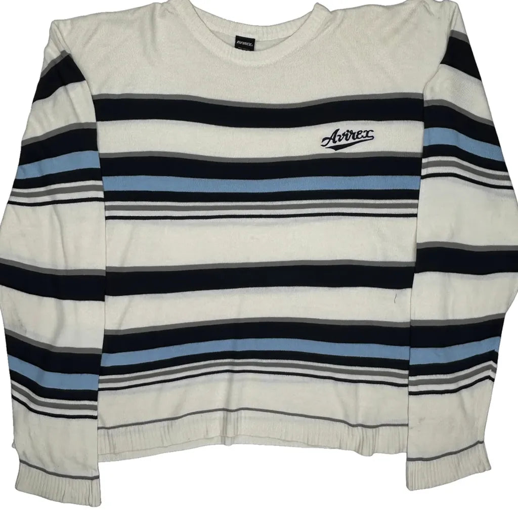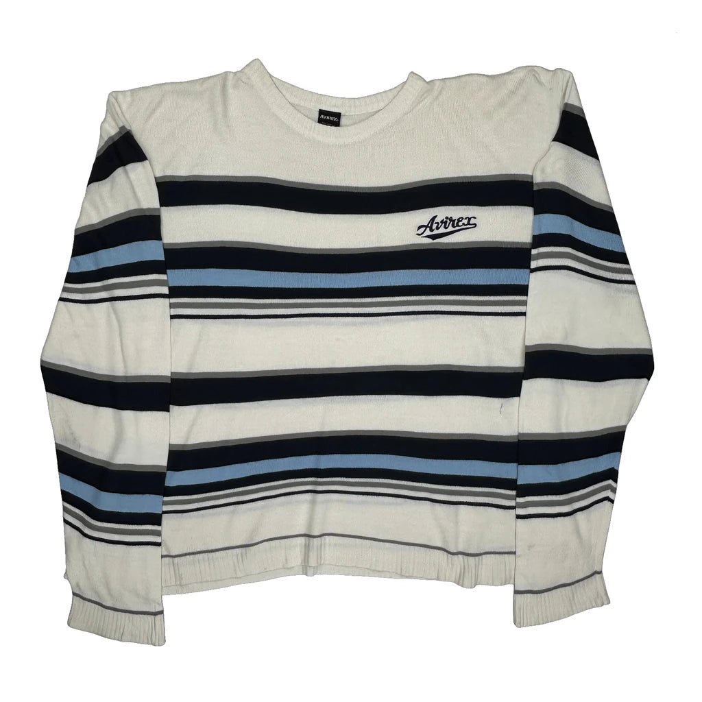 Avirex Striped Long Sleeve T-Shirt - XL White Acrylic