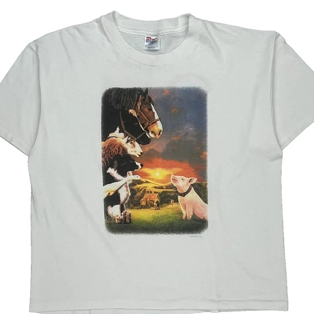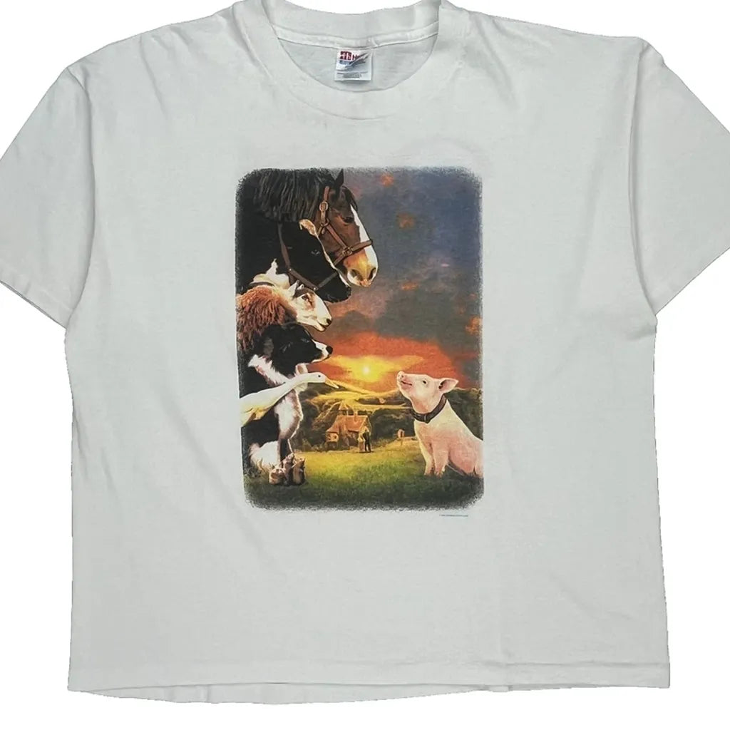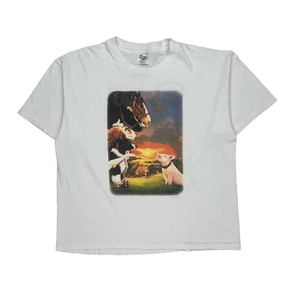 Babe Movie Print Hanes Graphic T-Shirt - XL White Cotton Blend