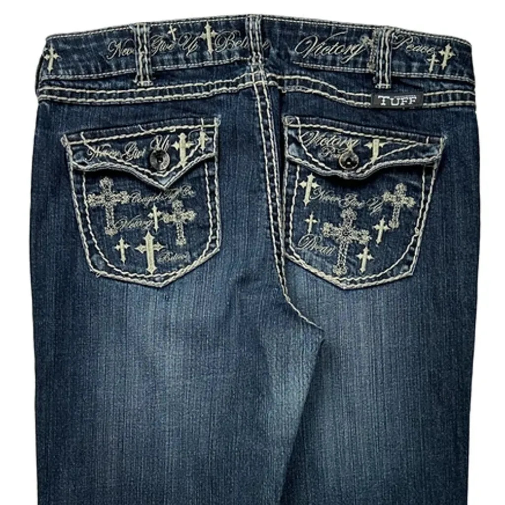 Embroidered Cross Designs On Back Pockets