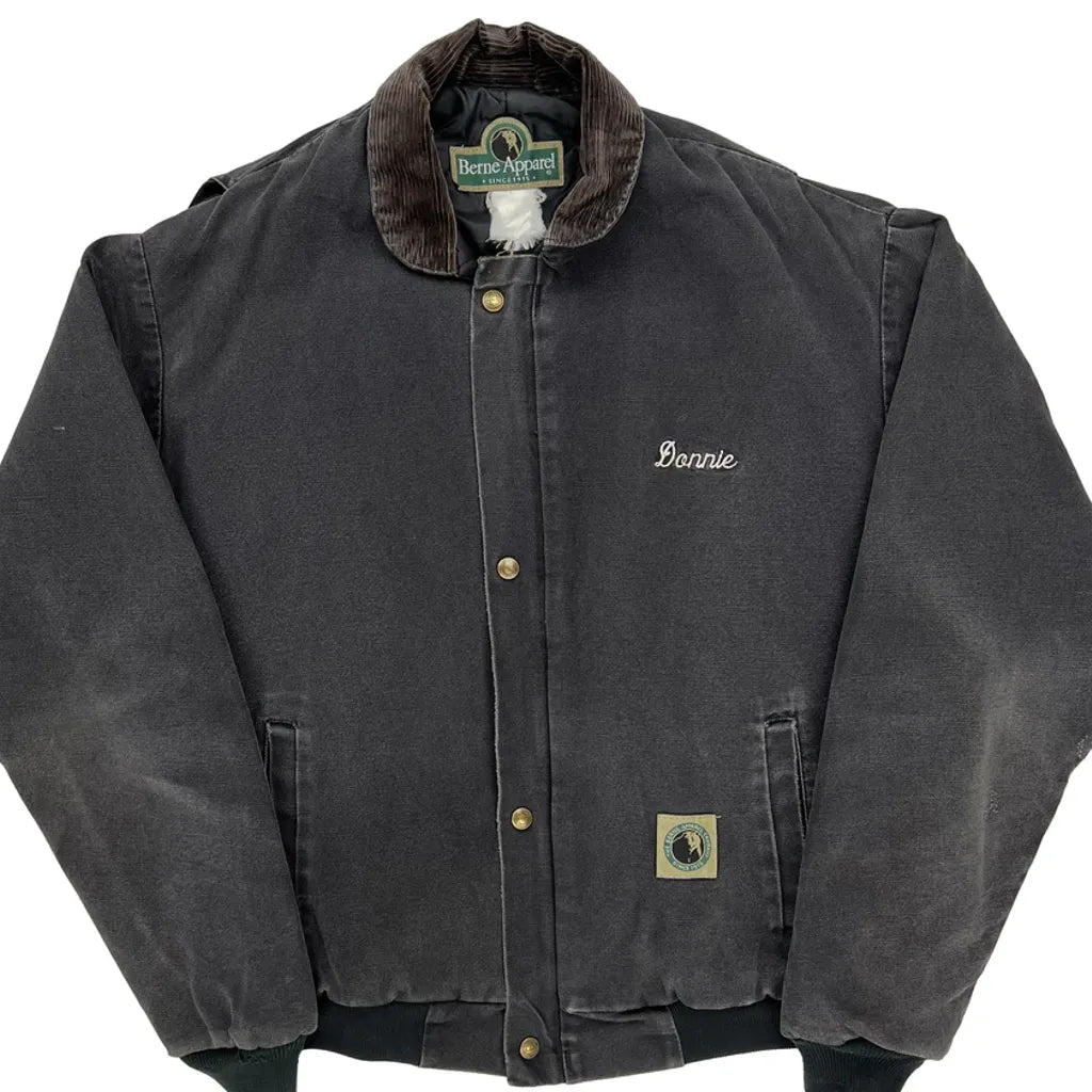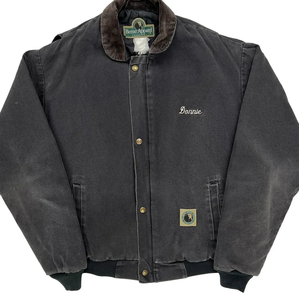 Berne Bomber Jacket With M & M Enterprises Embroidery. Slight Wear Visible.