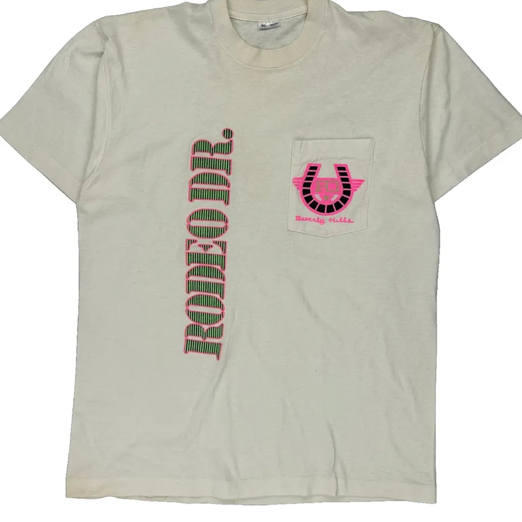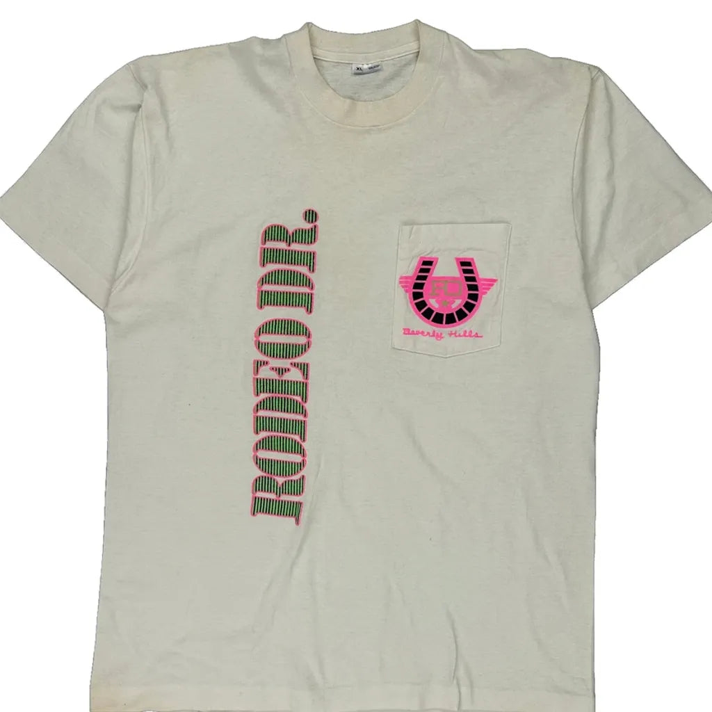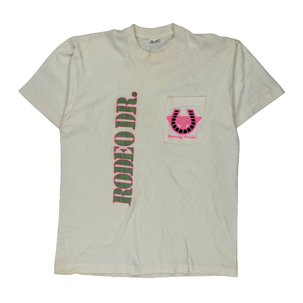 Beverly Hills Unbranded Single Stitch T-Shirt - XL Cream Cotton