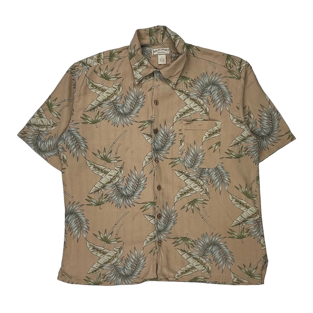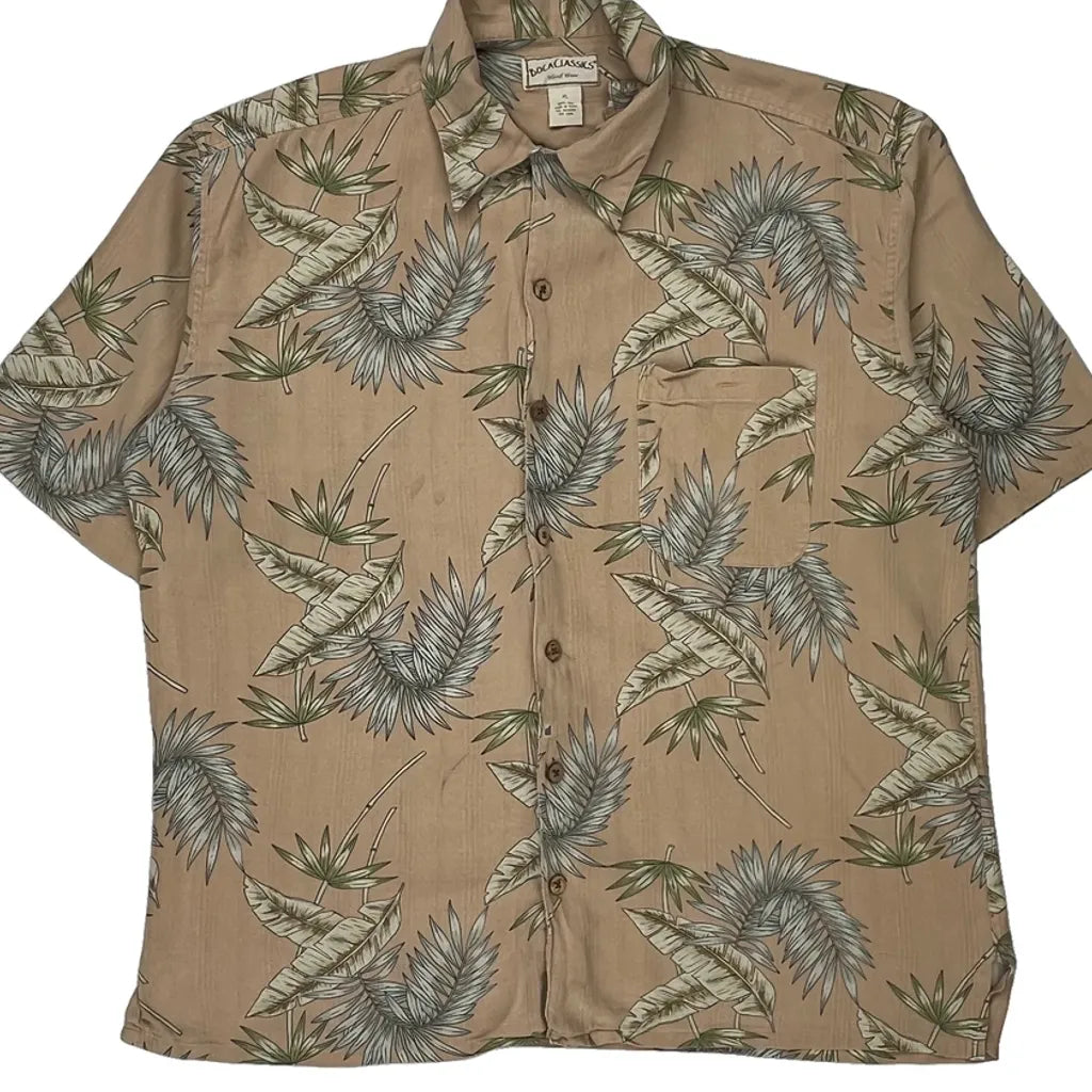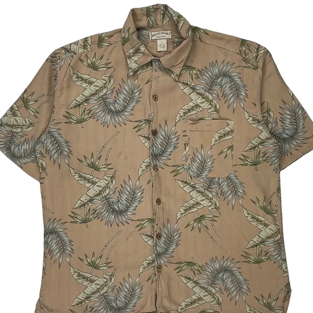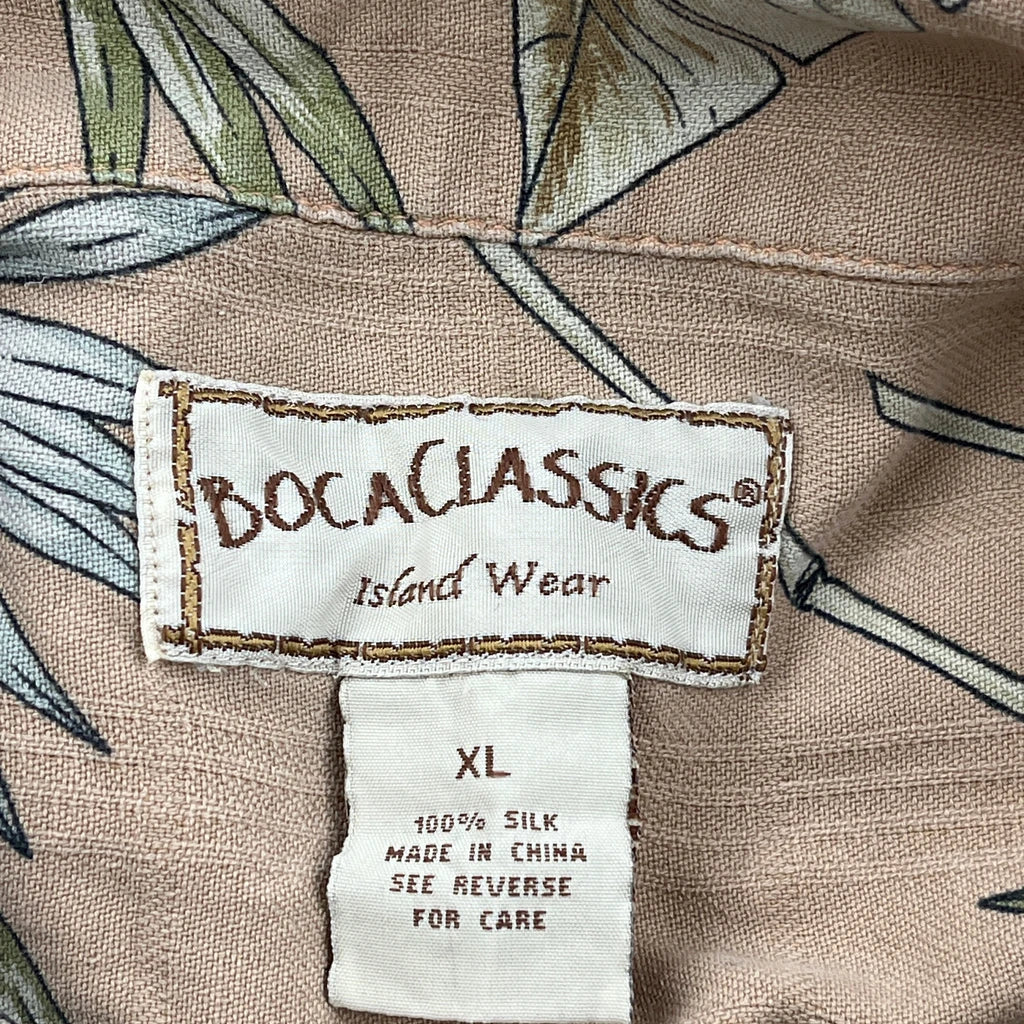 Boca Classics Floral Hawaiian Shirt - XL Beige Silk