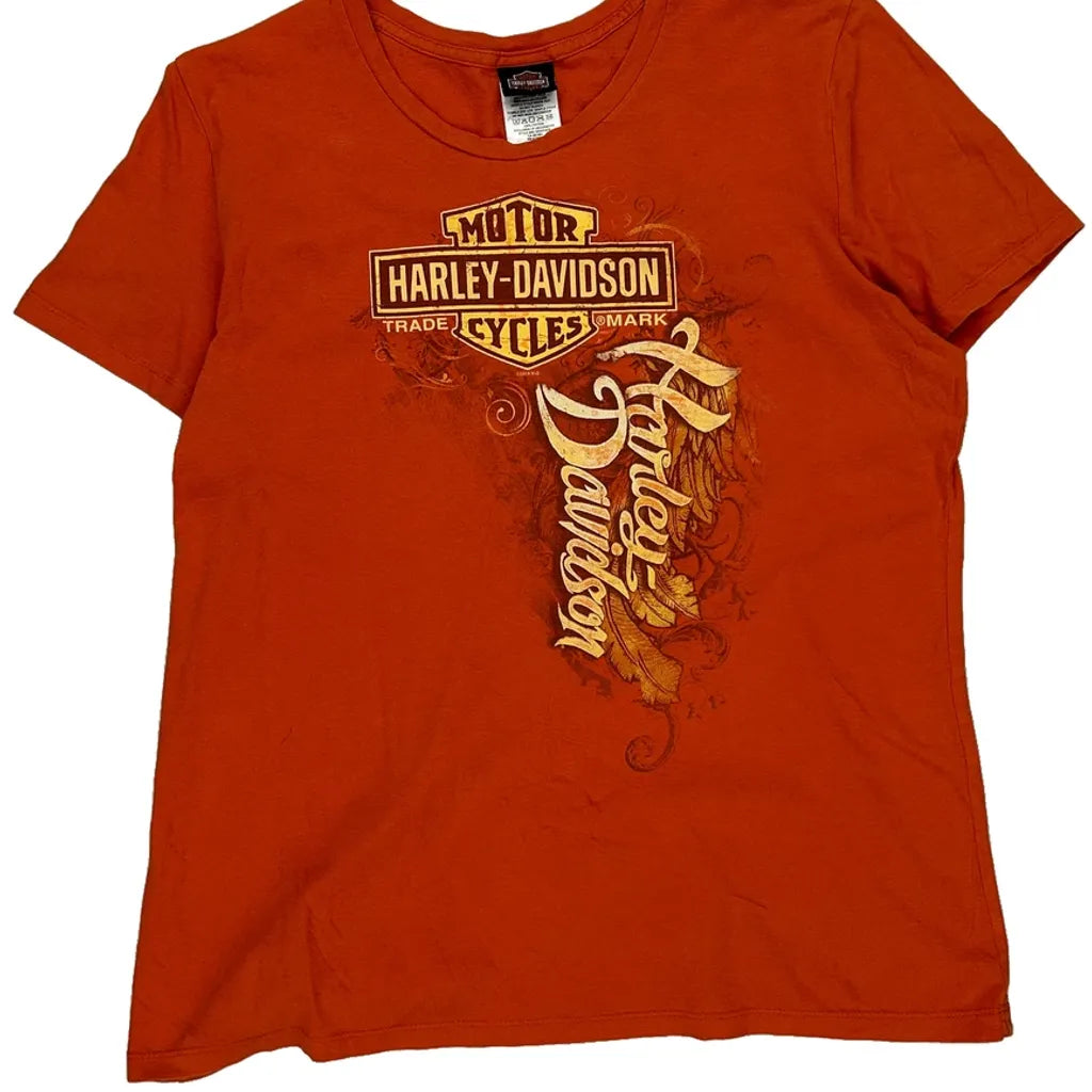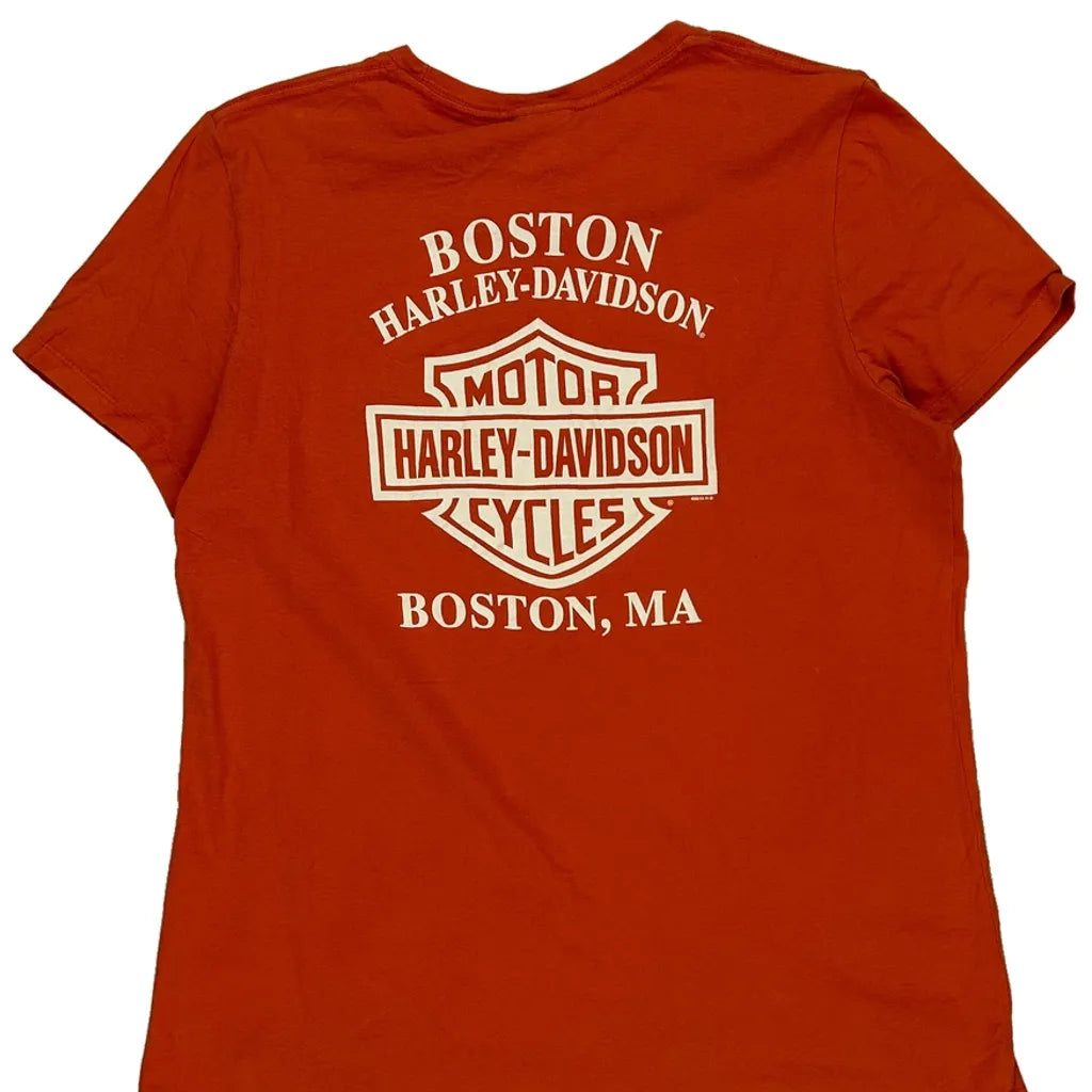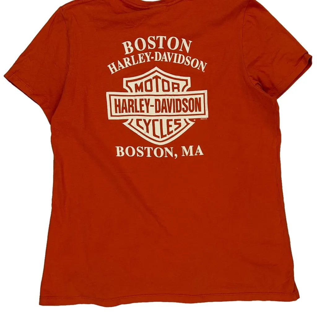 Boston Harley Davidson T-Shirt - XL Orange Cotton