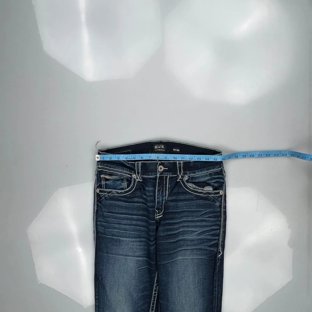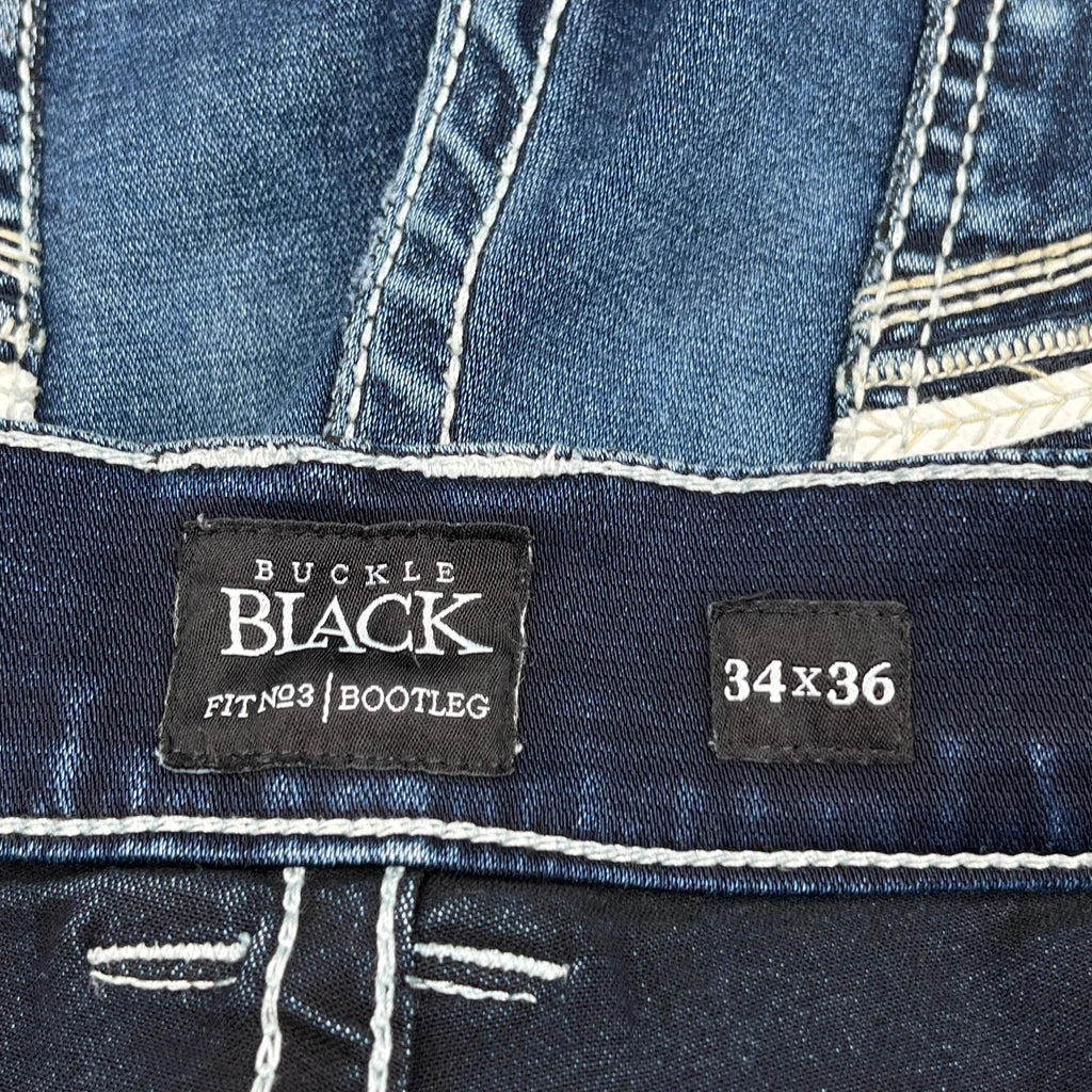 Buckle Black Boot Cut Jeans - 32W 36L Dark Wash Denim
