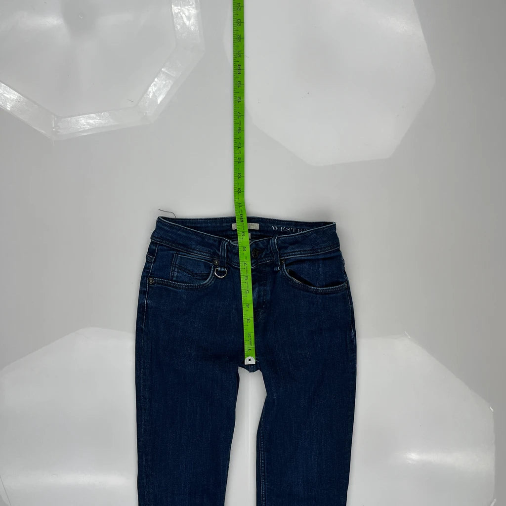 Burberry Brit Jeans, fit a UK size 2 with a 24″ Waist.