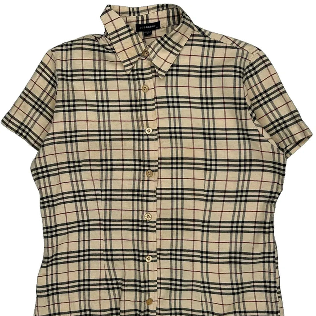 Burberry Checked Short Sleeve Shirt - Small Beige Cotton