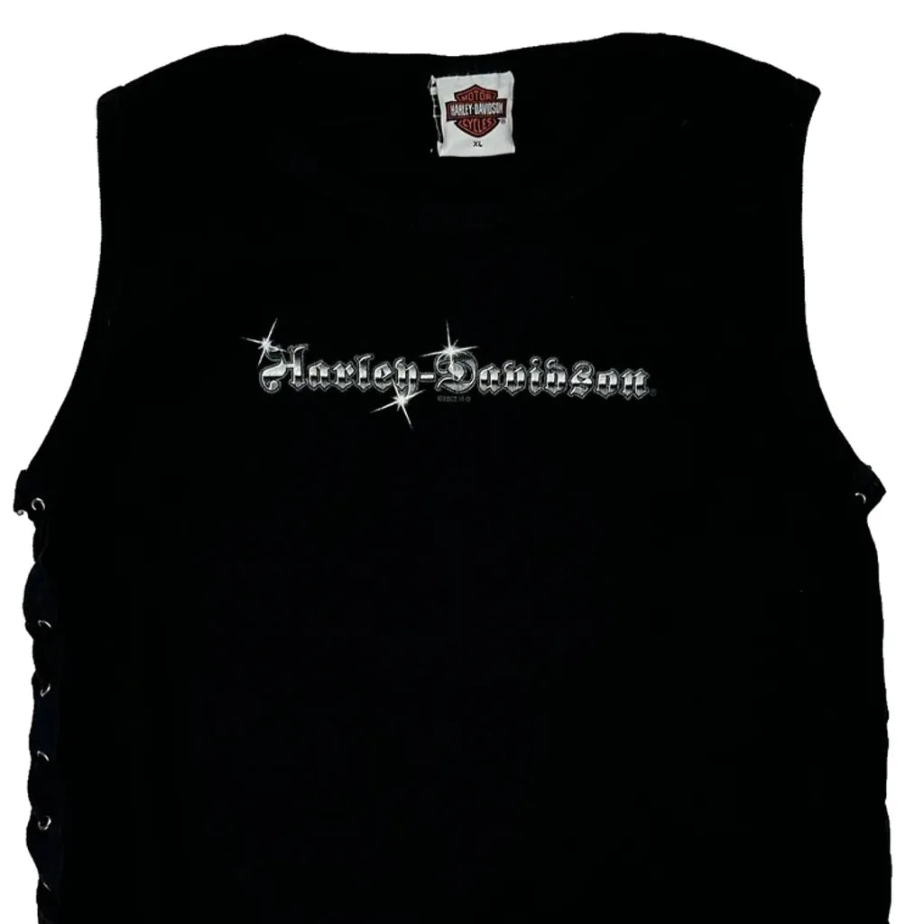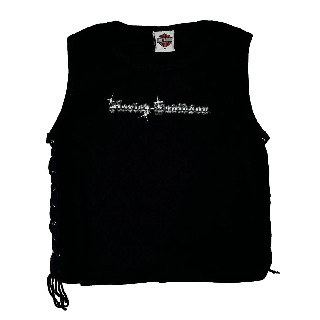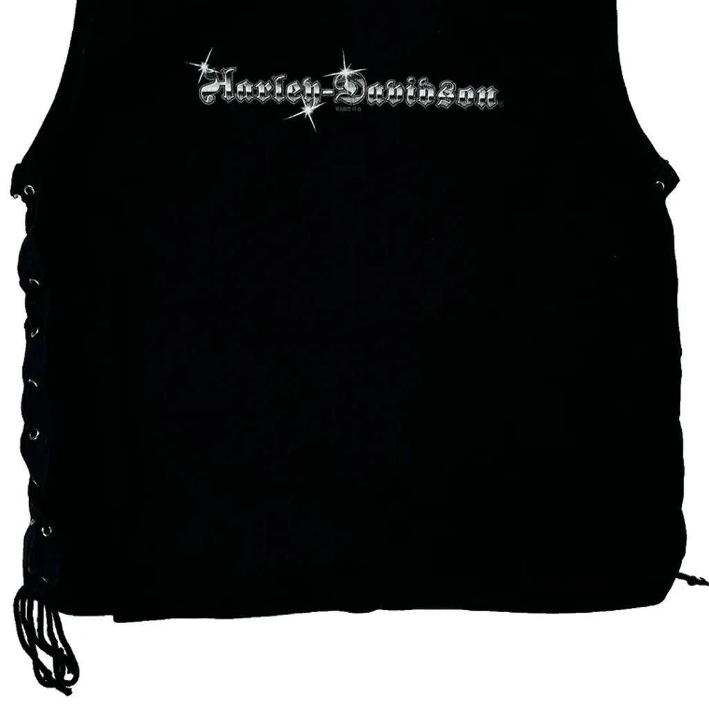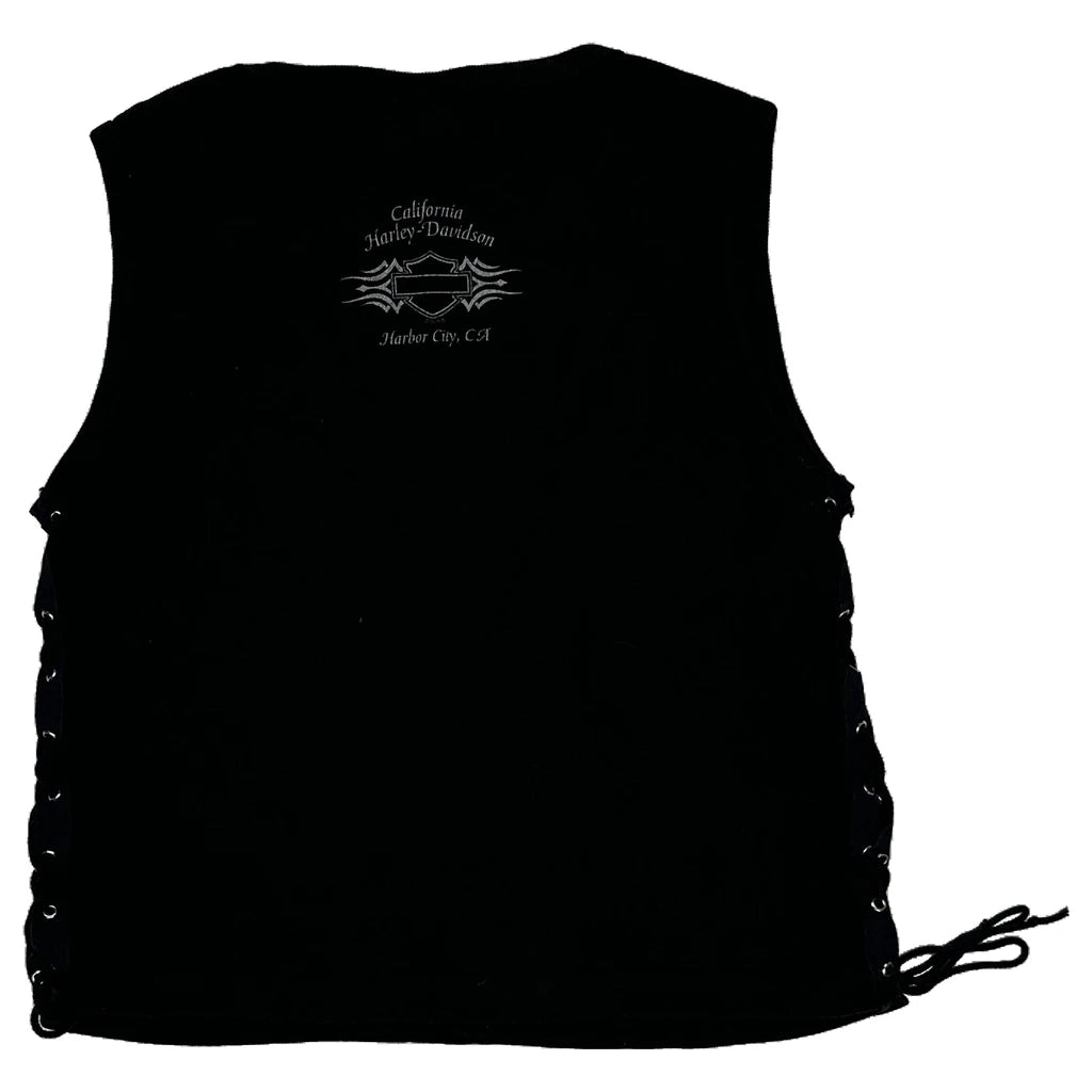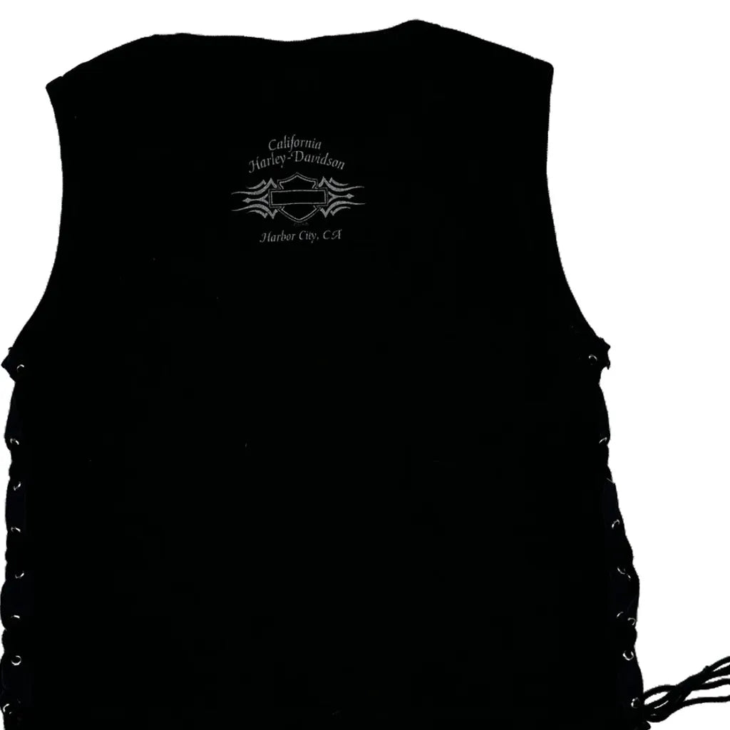 Black Harley Davidson Vest With Lace-Up Sides And Graphic Text