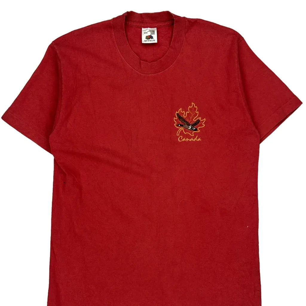 Canada Fruit Of The Loom Single Stitch T-Shirt - Medium Red Cotton