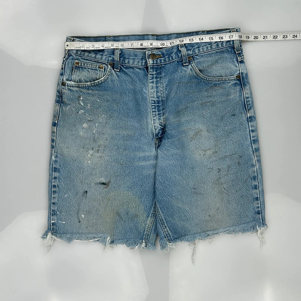 Carhartt Denim Shorts, fit a 36″ Waist and 9″ inseam.