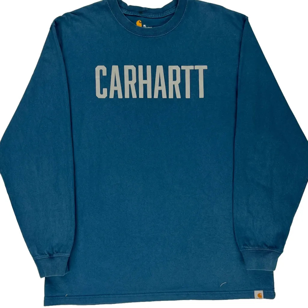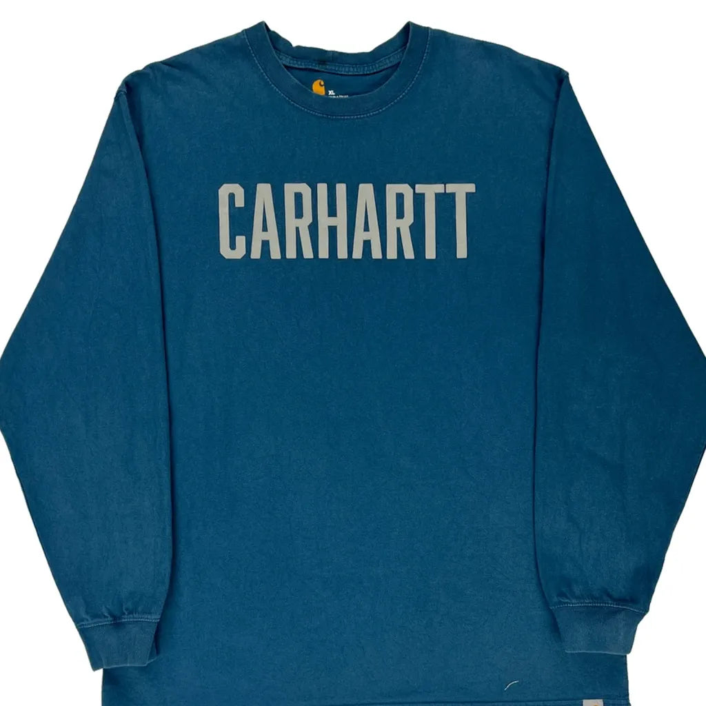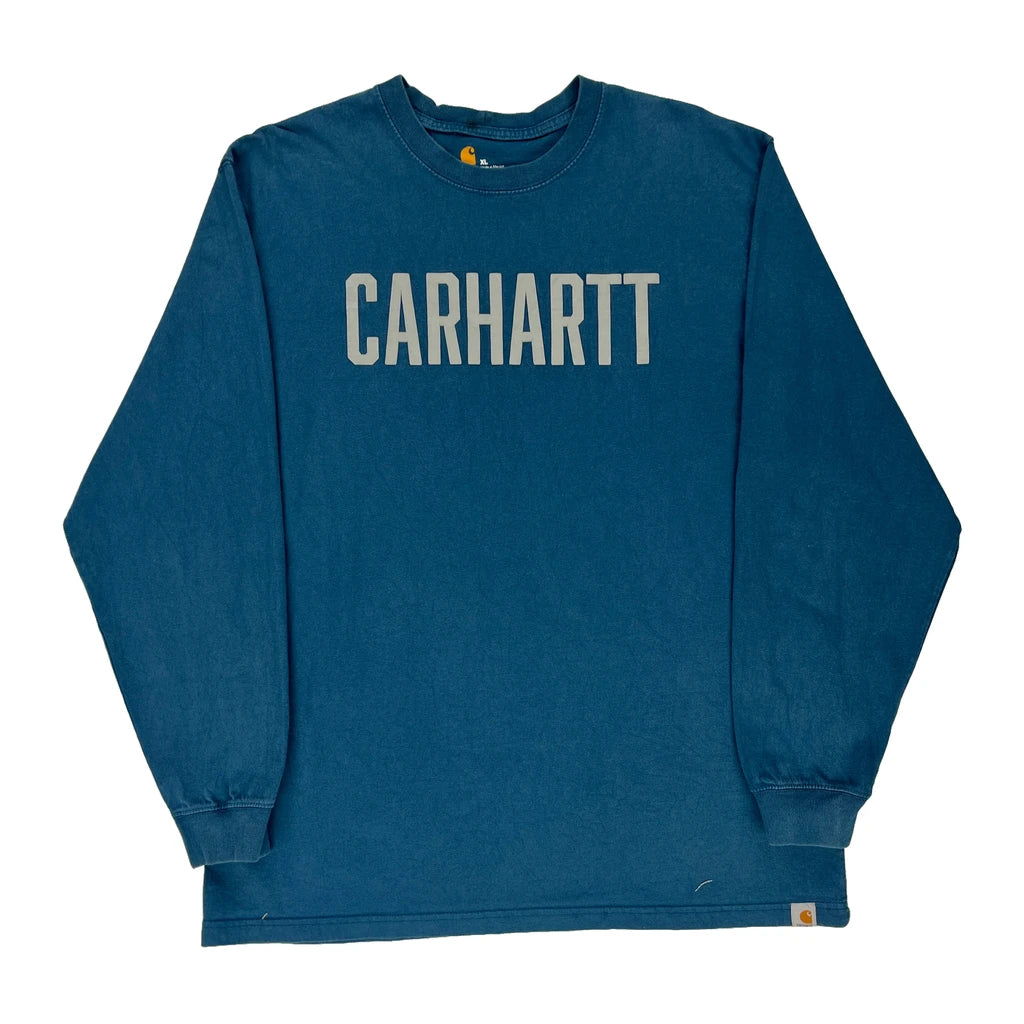 Carhartt Spellout Long Sleeve T-Shirt - XL Blue Cotton