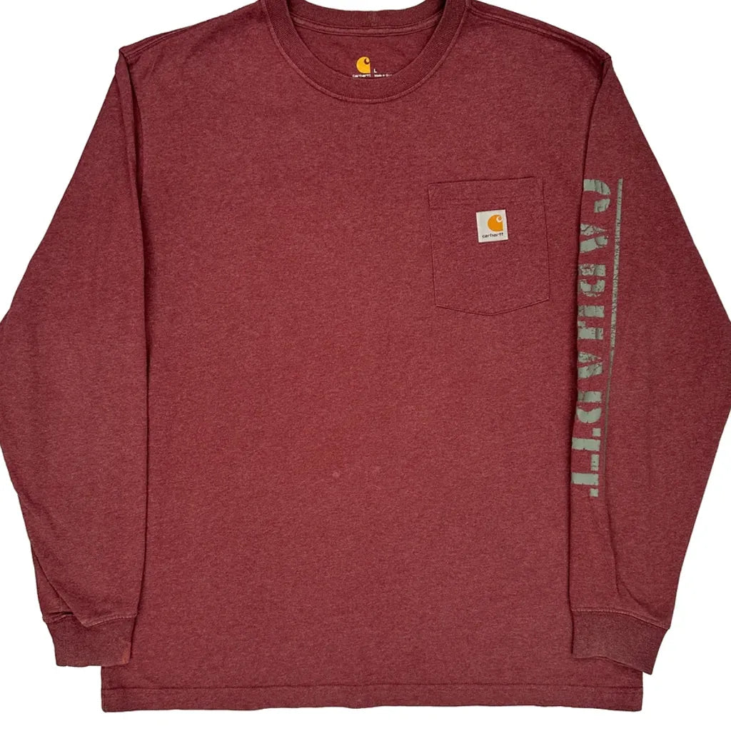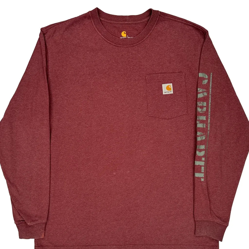 Carhartt Long Sleeve T-Shirt - Large Burgundy Cotton