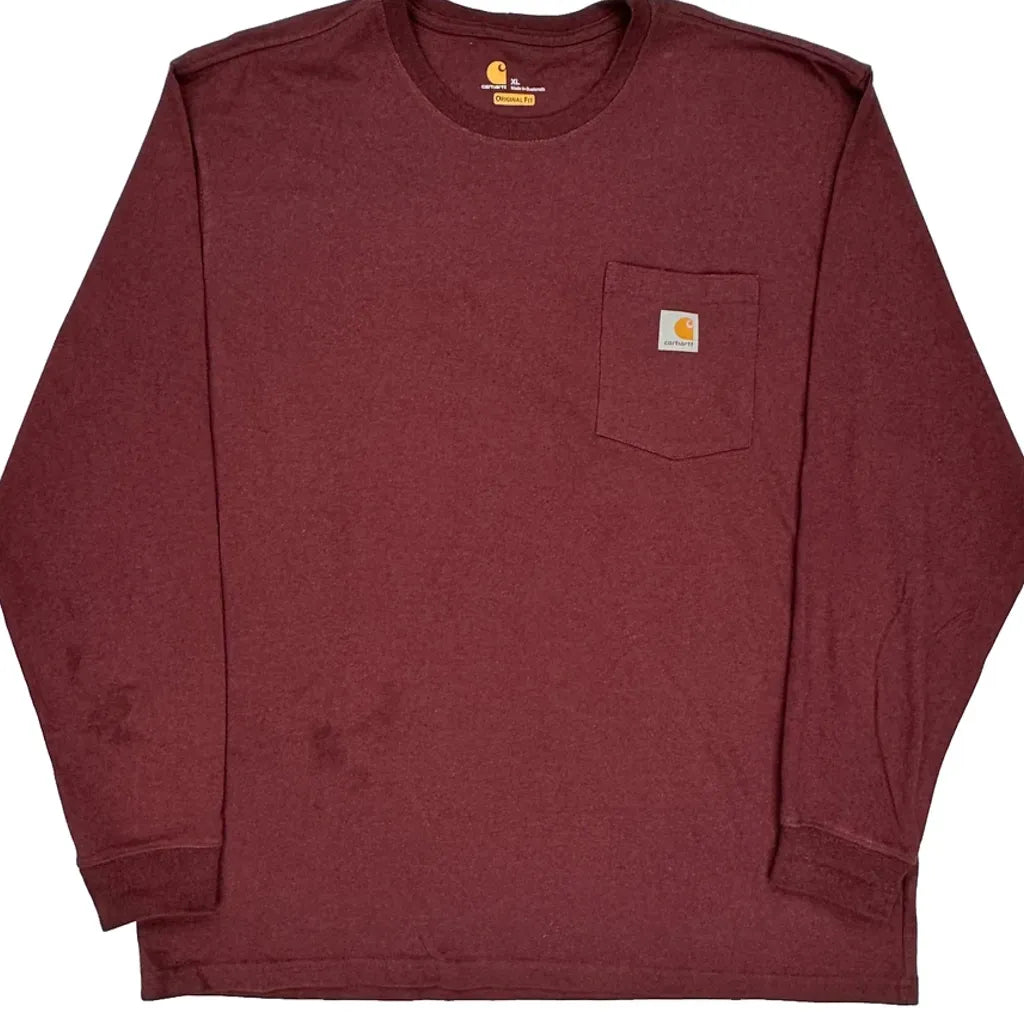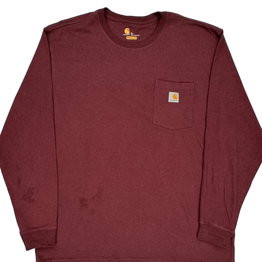 Carhartt Long Sleeve T-Shirt - XL Burgundy Cotton