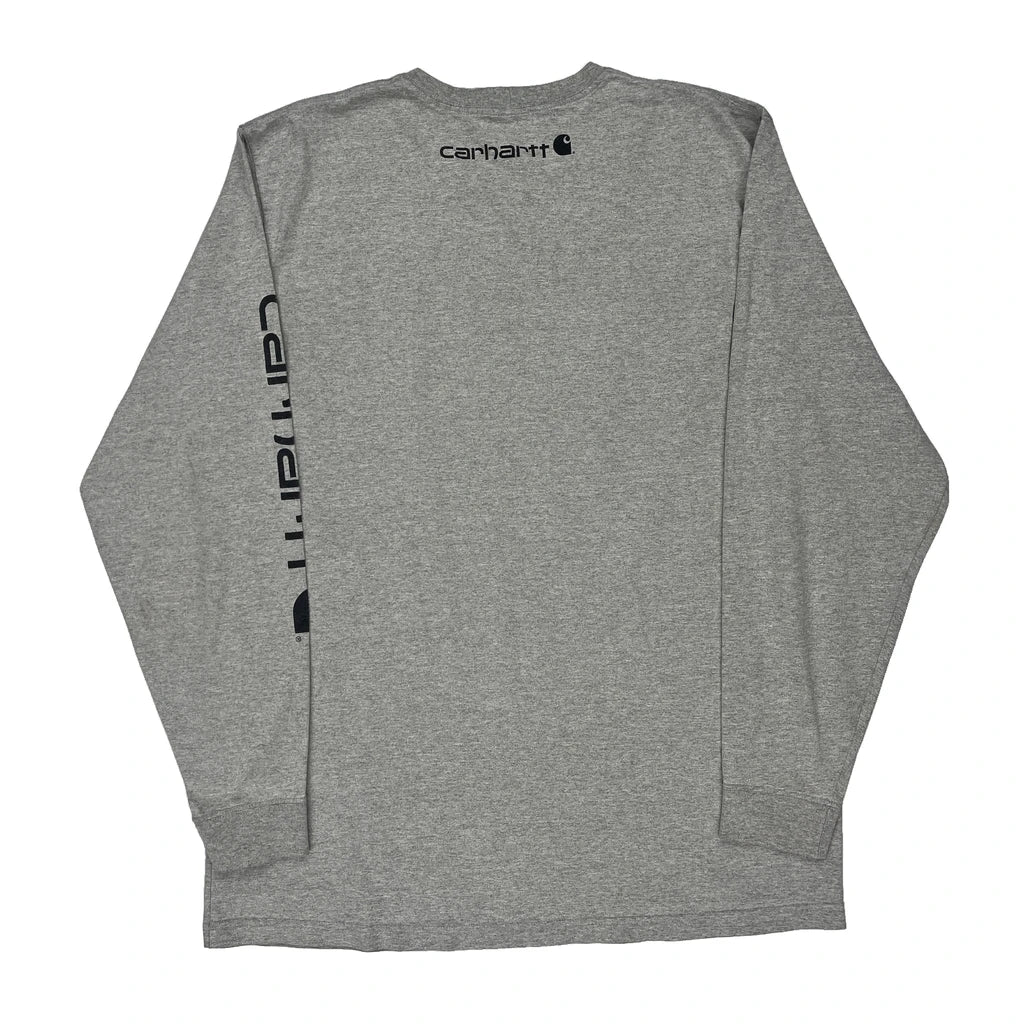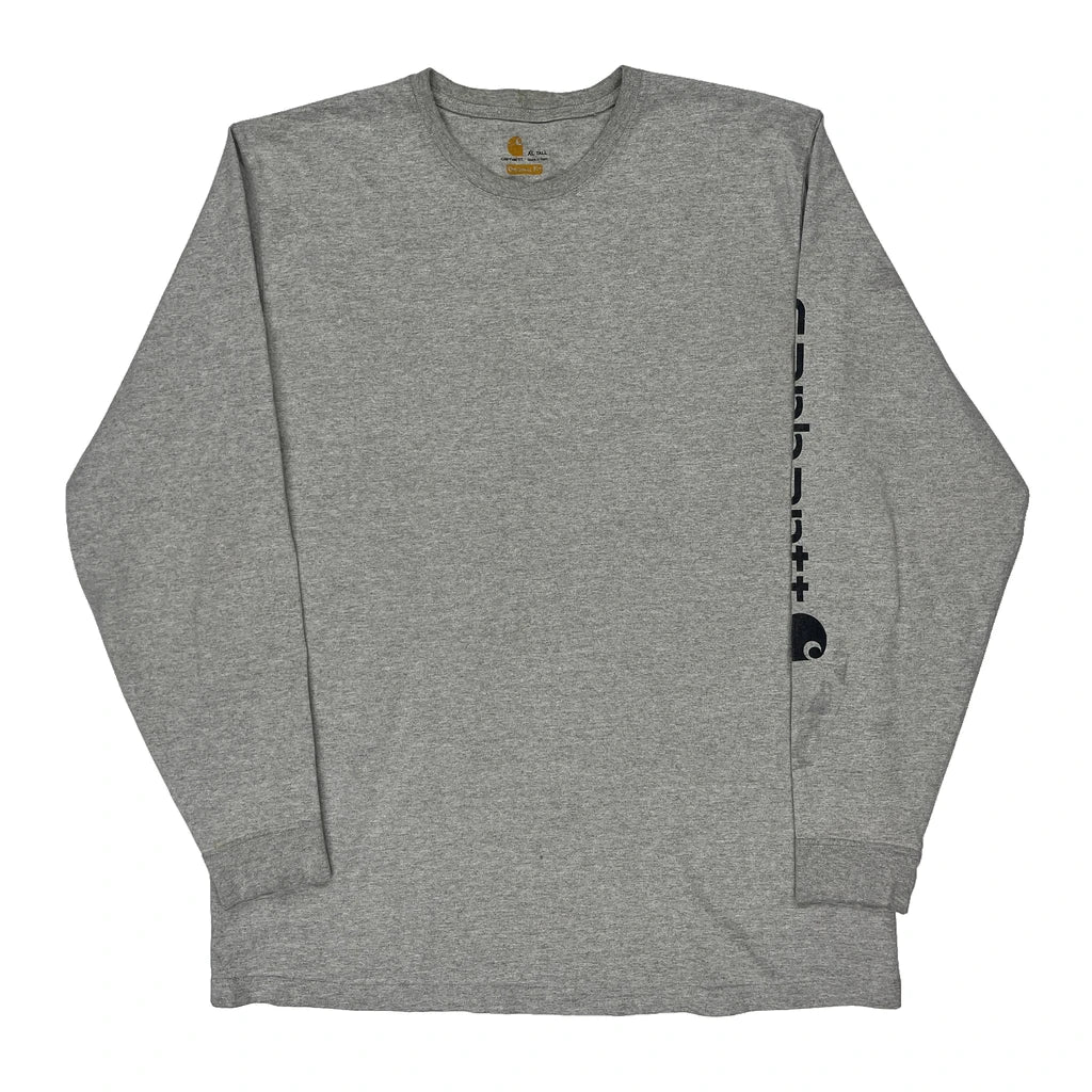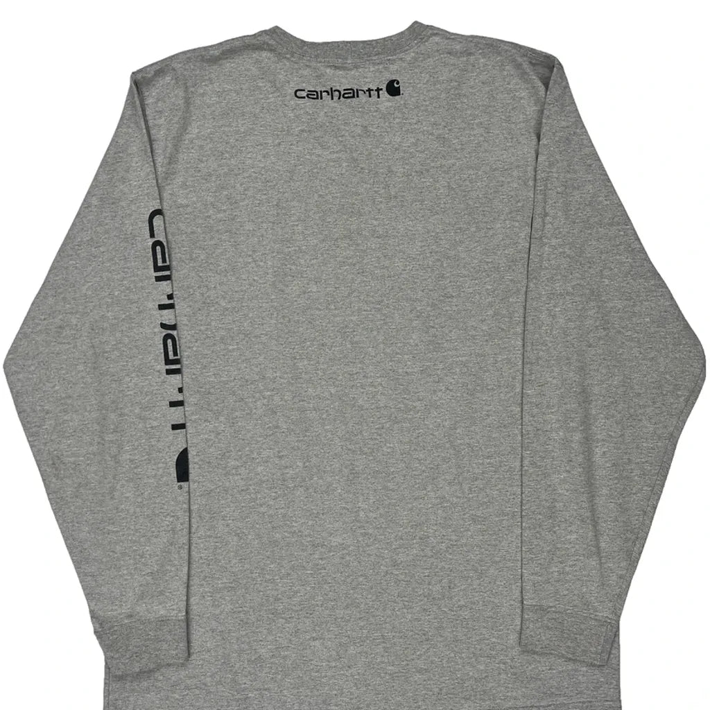 Carhartt Spellout Long Sleeve T-Shirt - XL Grey Cotton