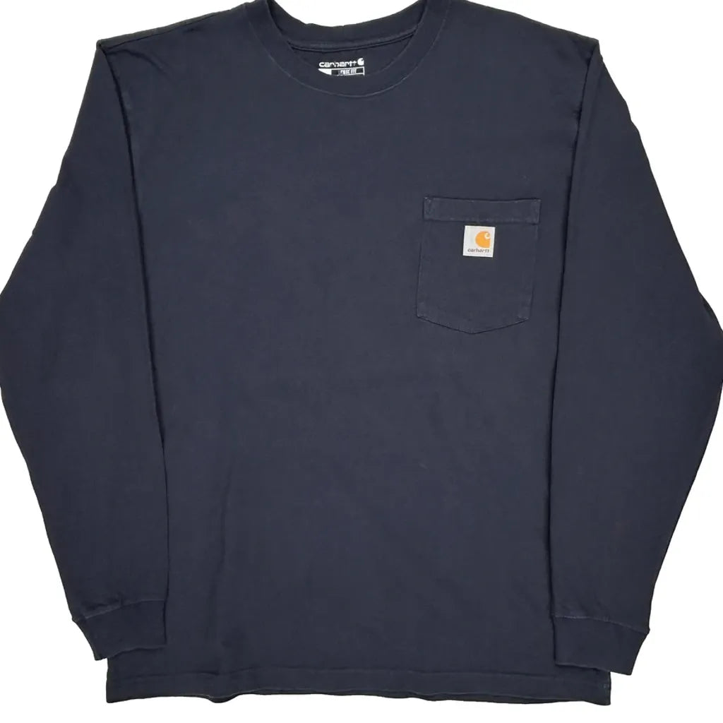 Carhartt Long Sleeve T-Shirt - Large Navy Cotton