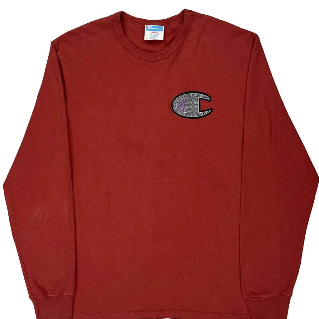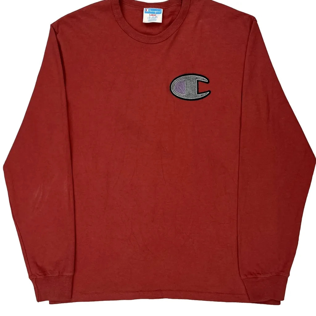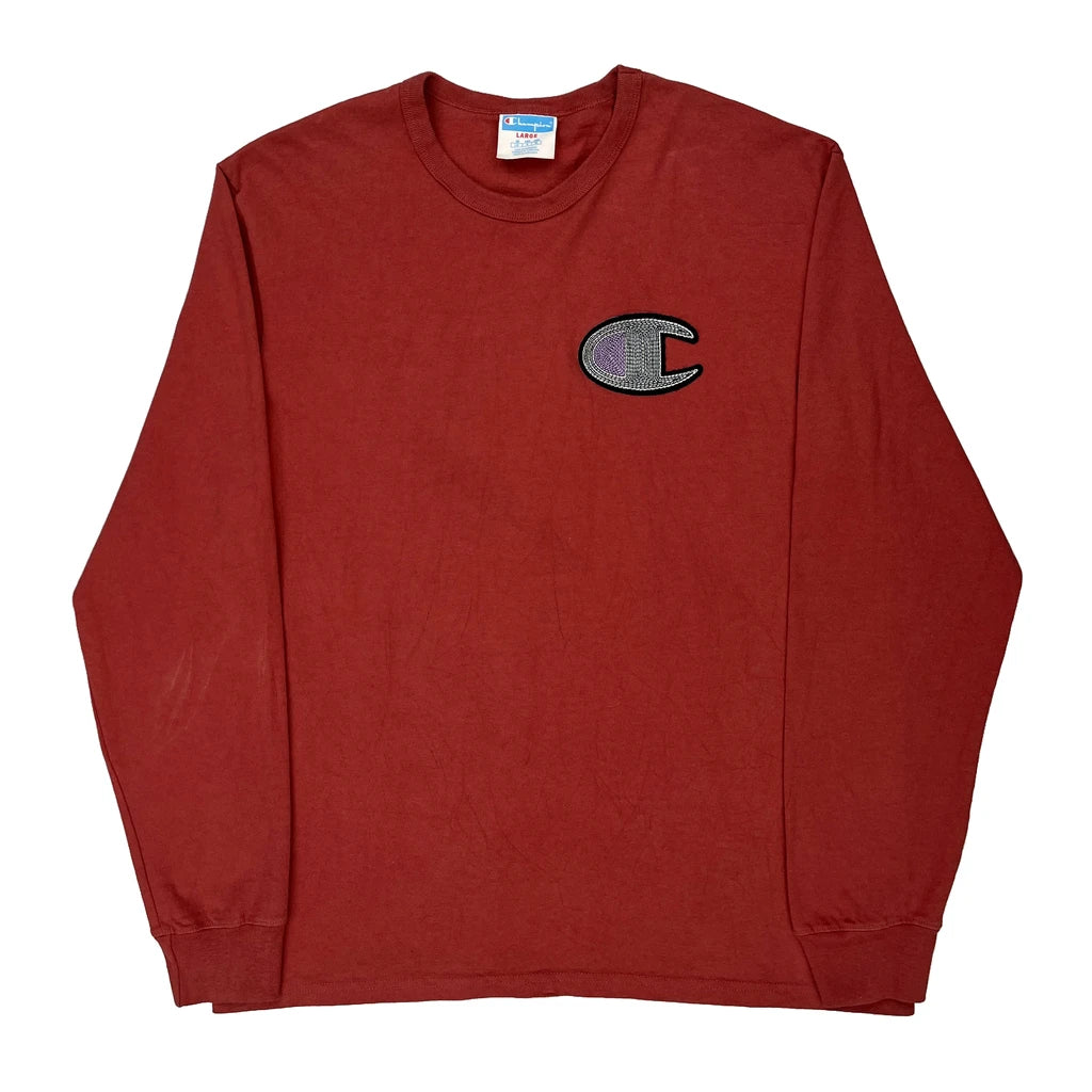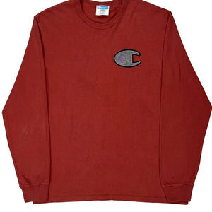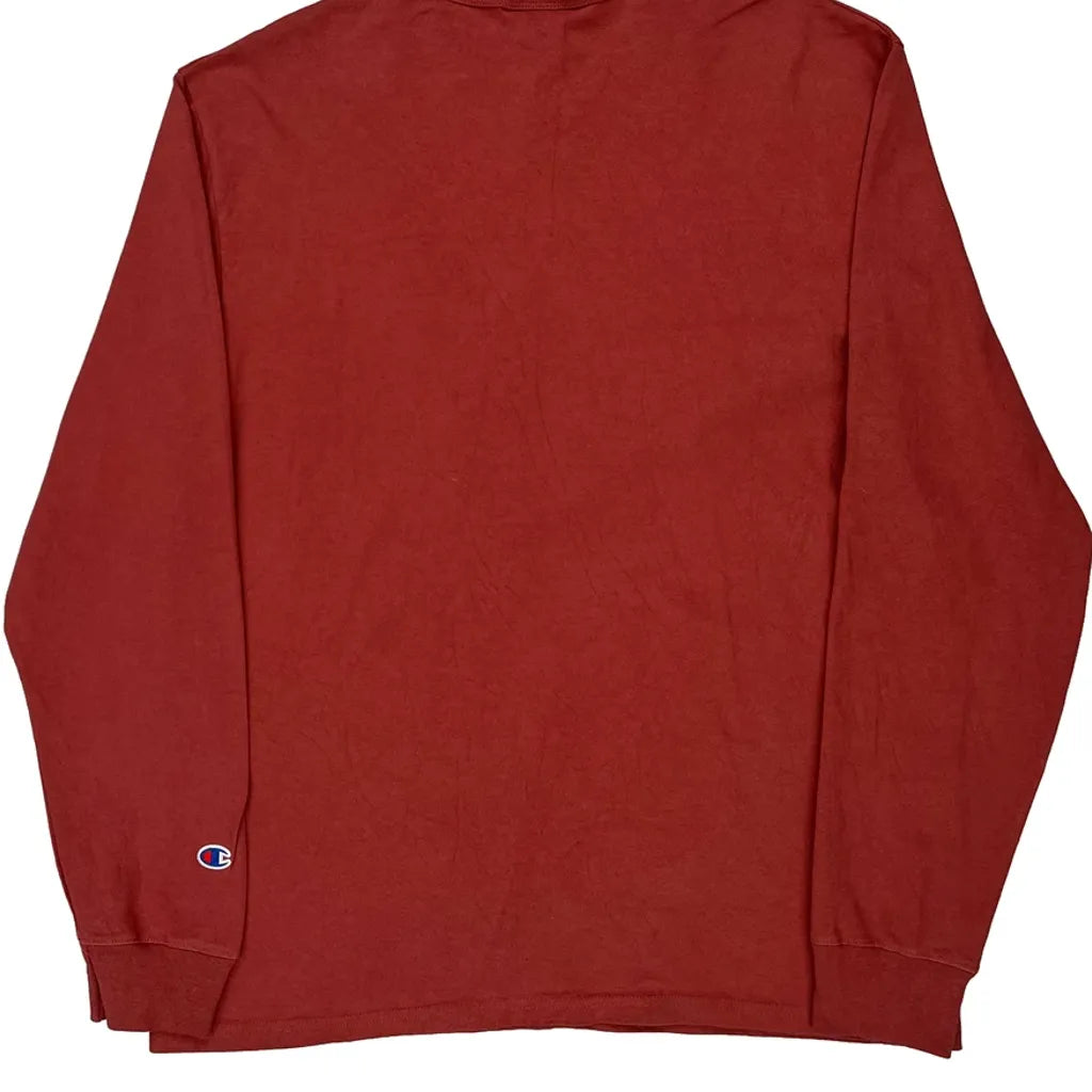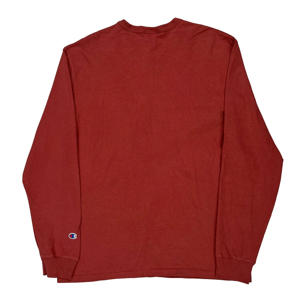 Champion Long Sleeve T-Shirt - Large Red Cotton