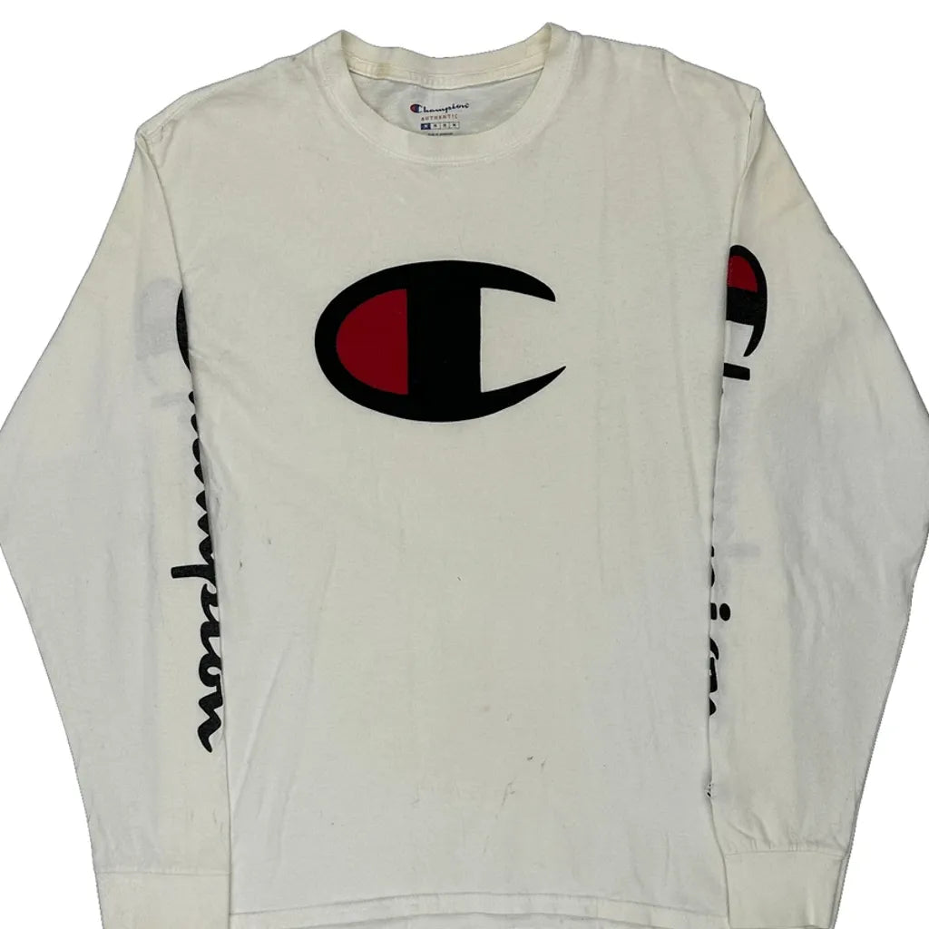Champion Long Sleeve T-Shirt - Medium White Cotton