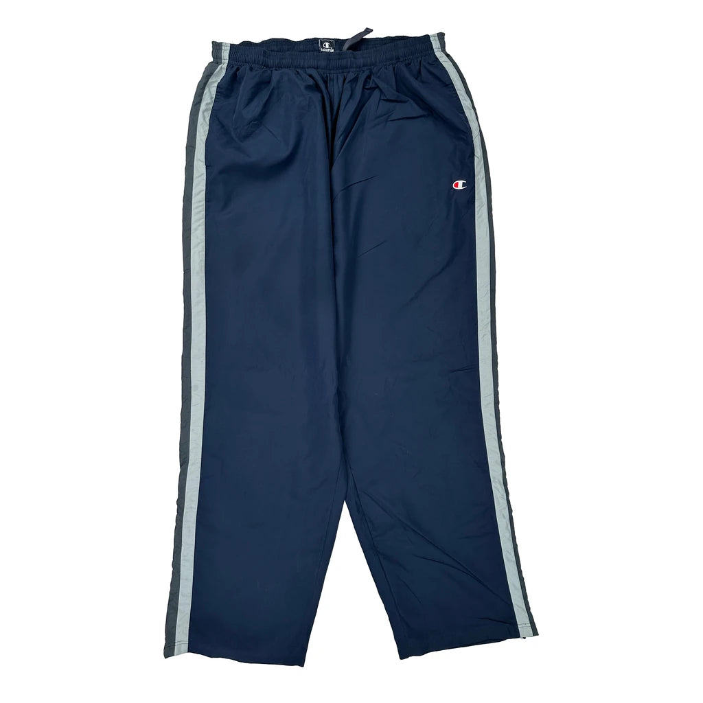 Champion Navy Tracksuit Bottoms With Light Grey Side Stripes.