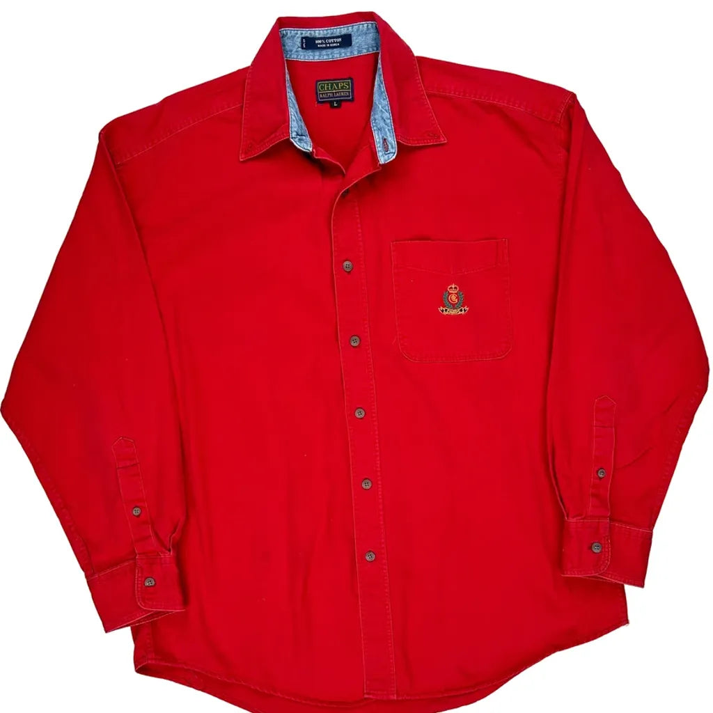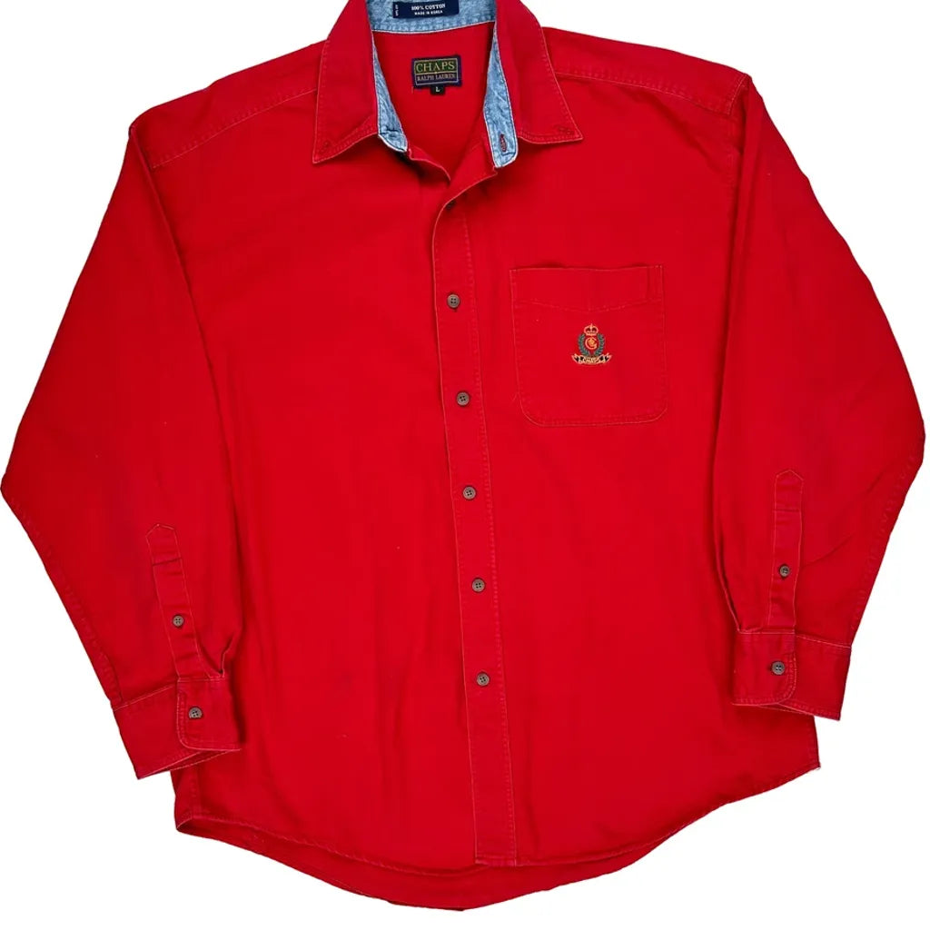 Chaps Ralph Lauren Shirt - Large Red Cotton