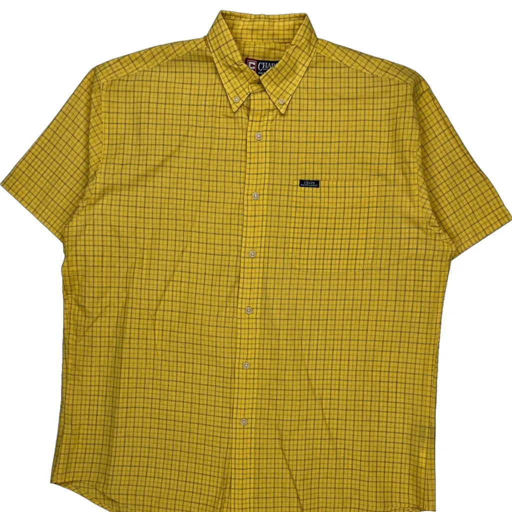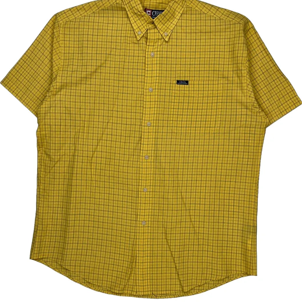 Chaps Ralph Lauren Checked Short Sleeve Shirt - Large Yellow Cotton