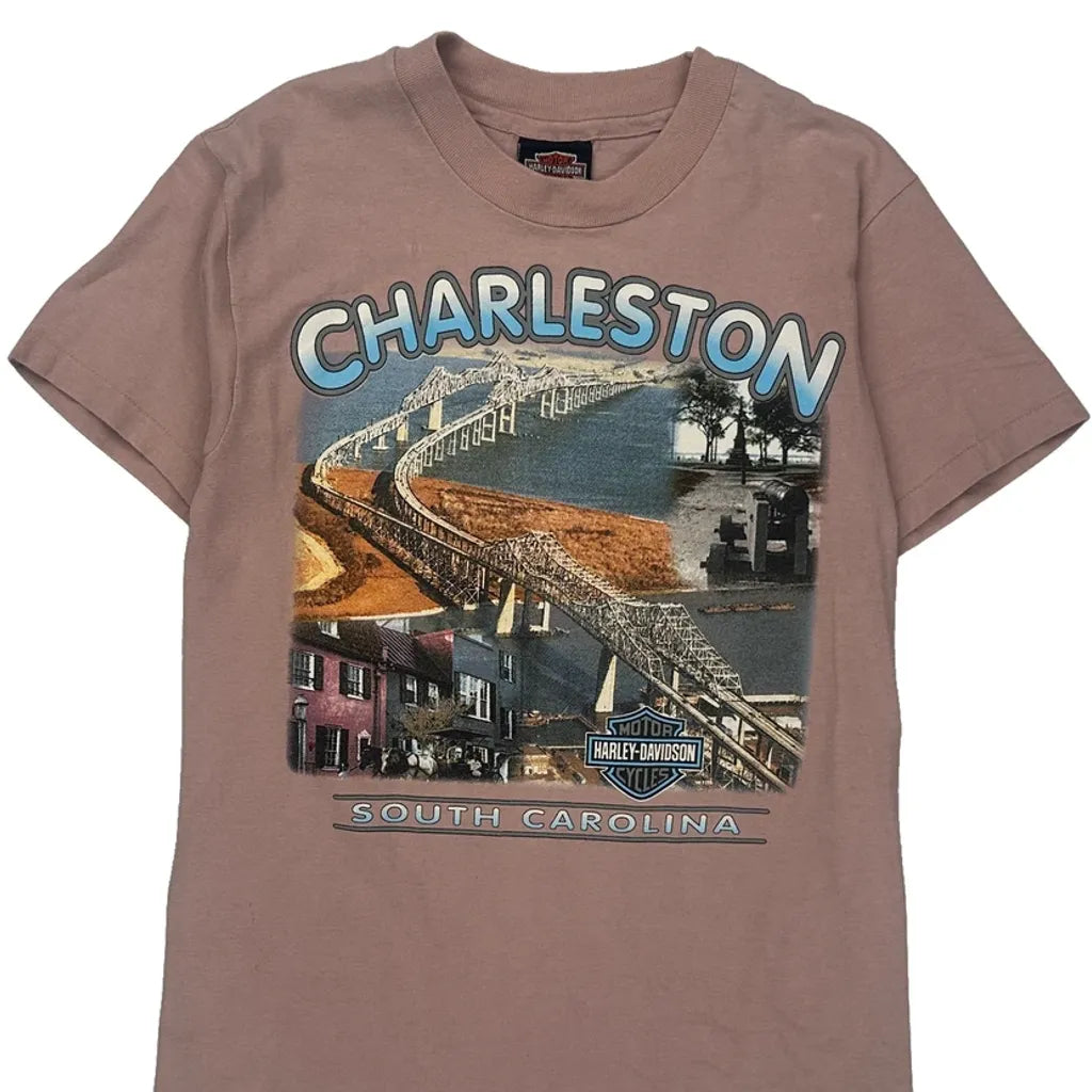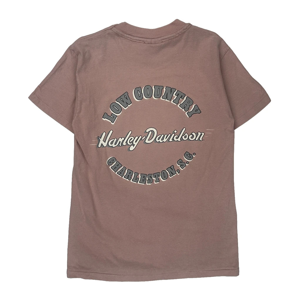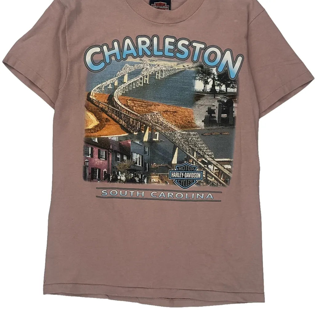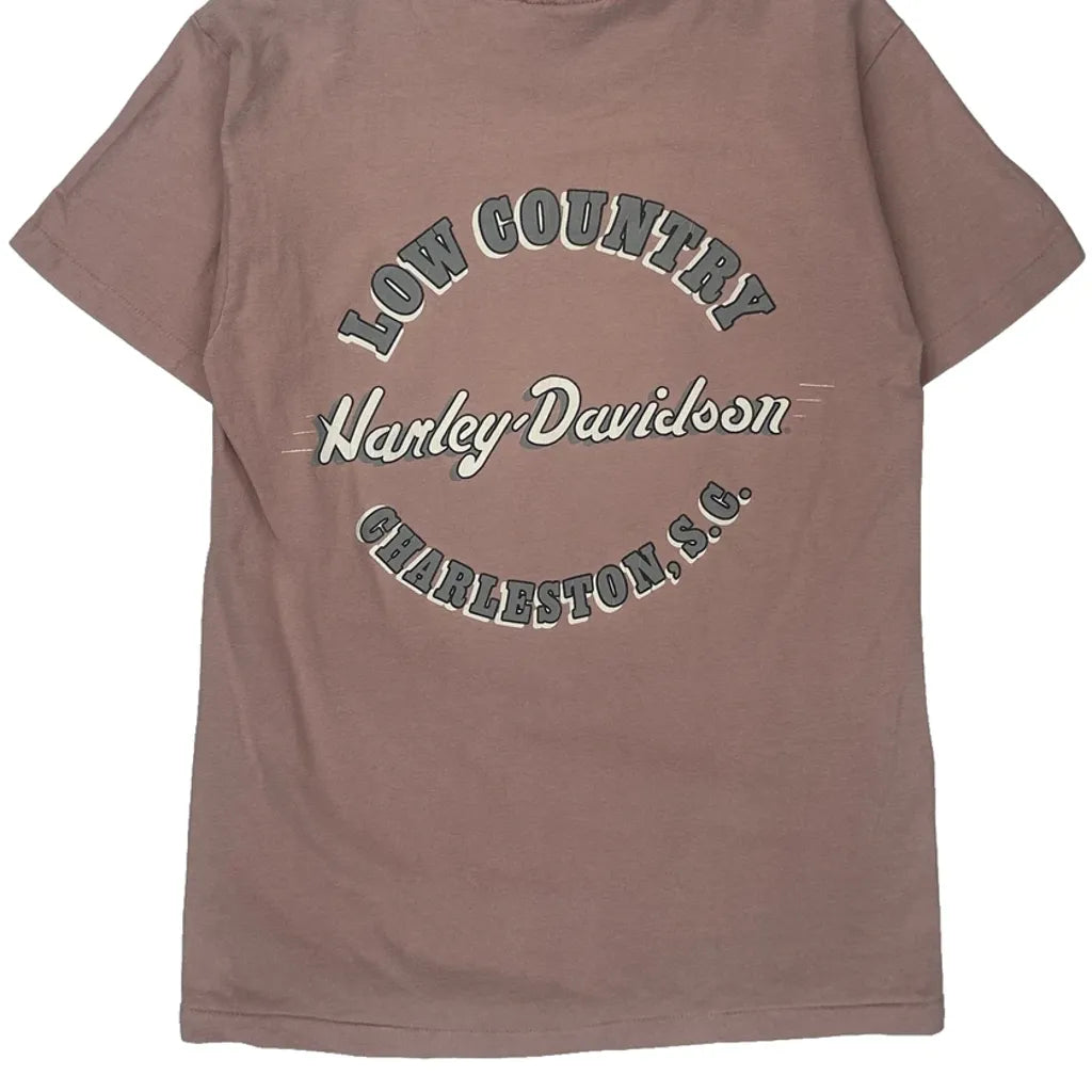 Charleston, South Carolina Harley Davidson Graphic T-Shirt - Small Pink Cotton