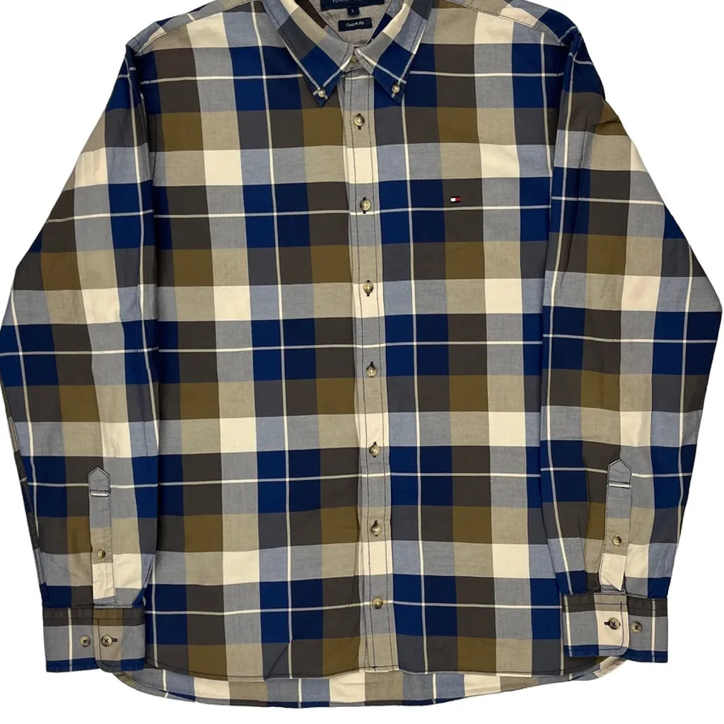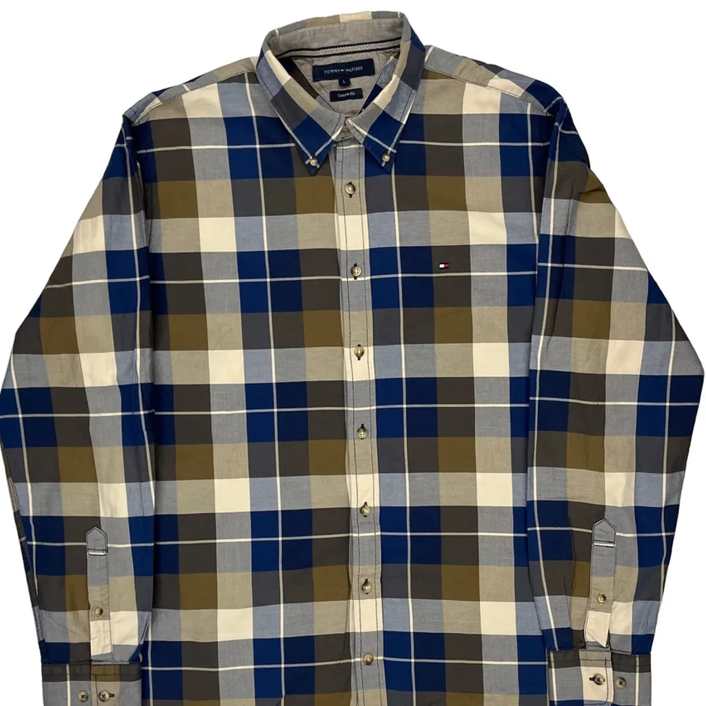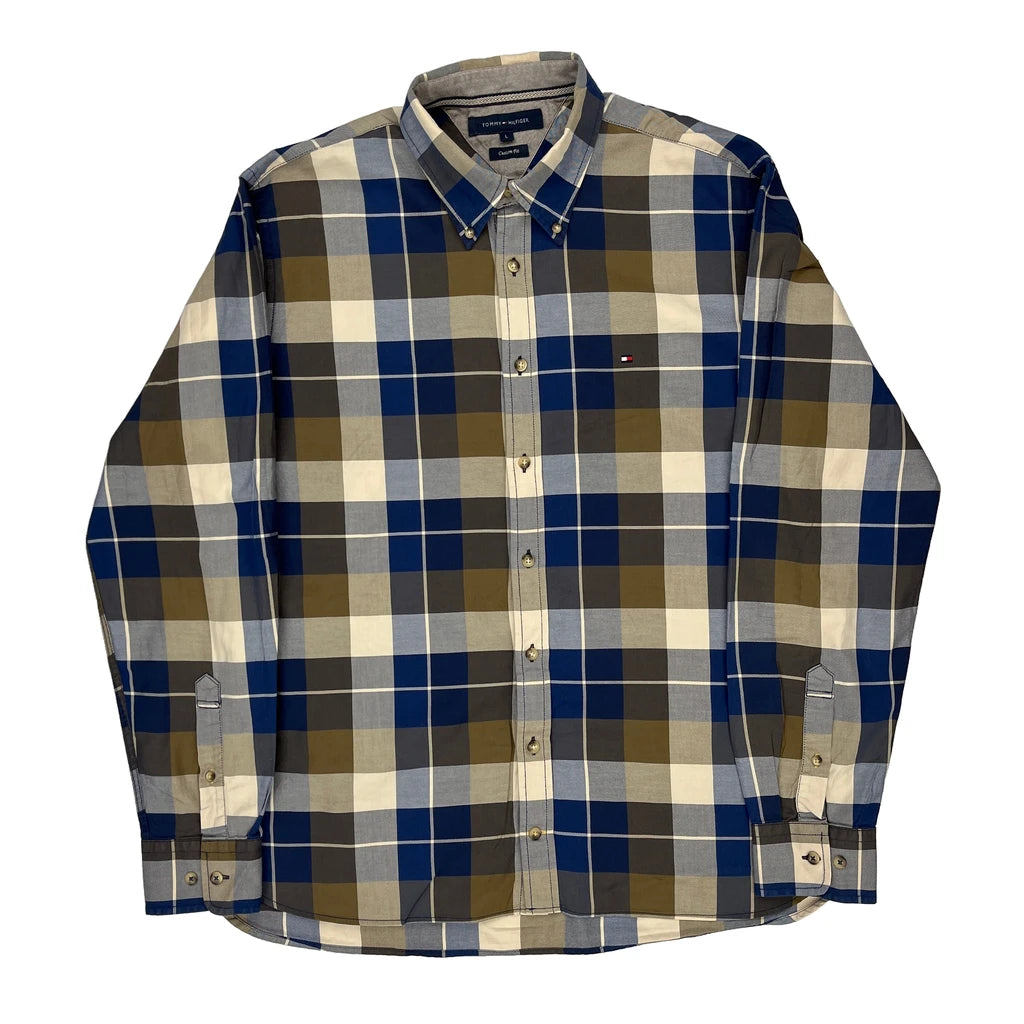 Custom Fit Tommy Hilfiger Checked Shirt - Large Blue Cotton