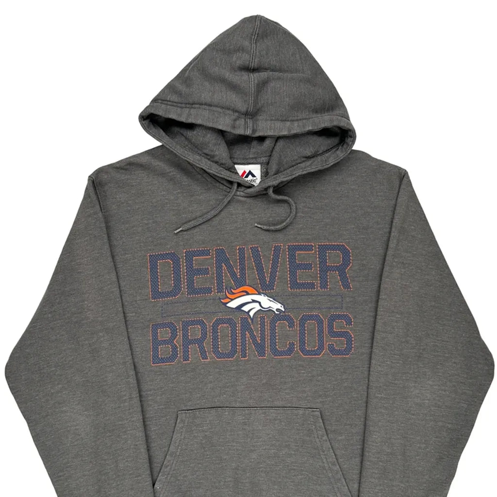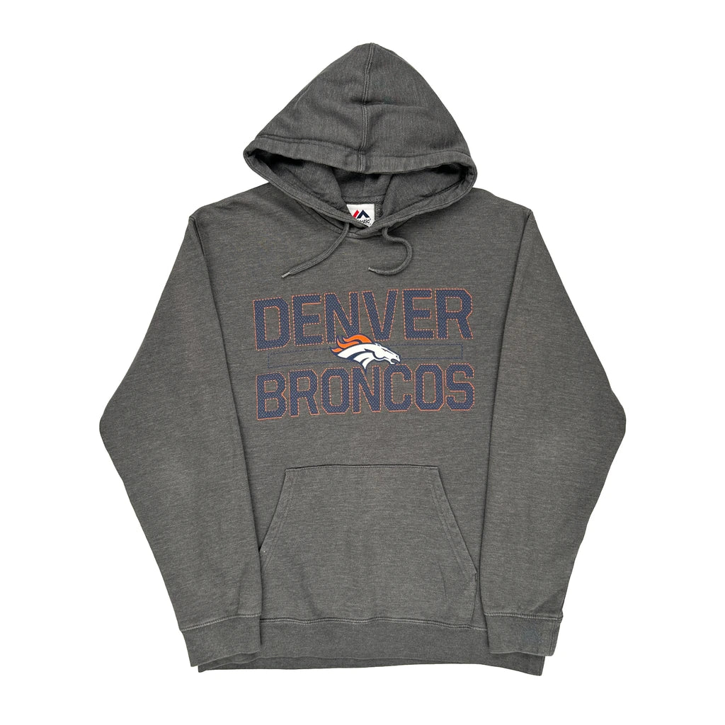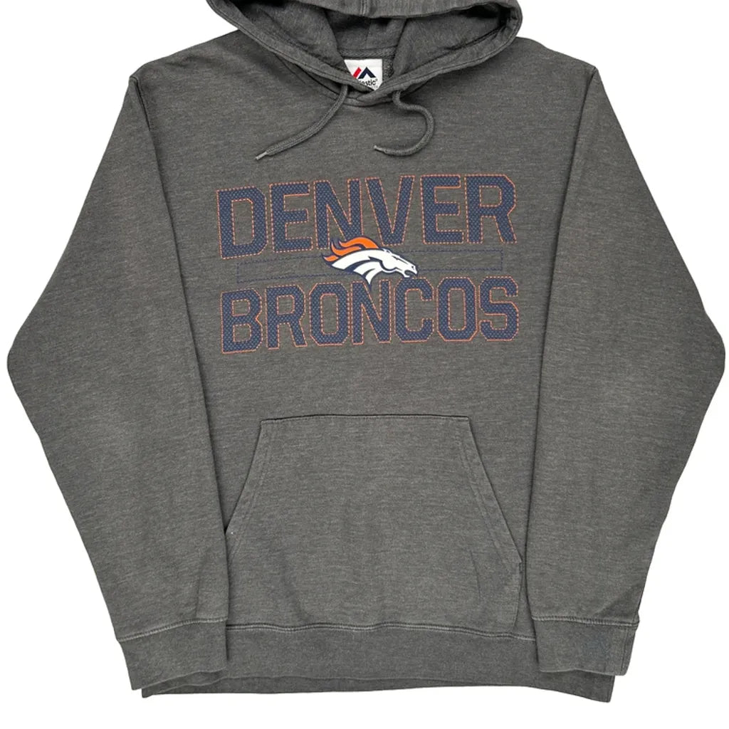 Denver Broncos Majestic Nfl Hoodie - Large Grey Cotton Blend