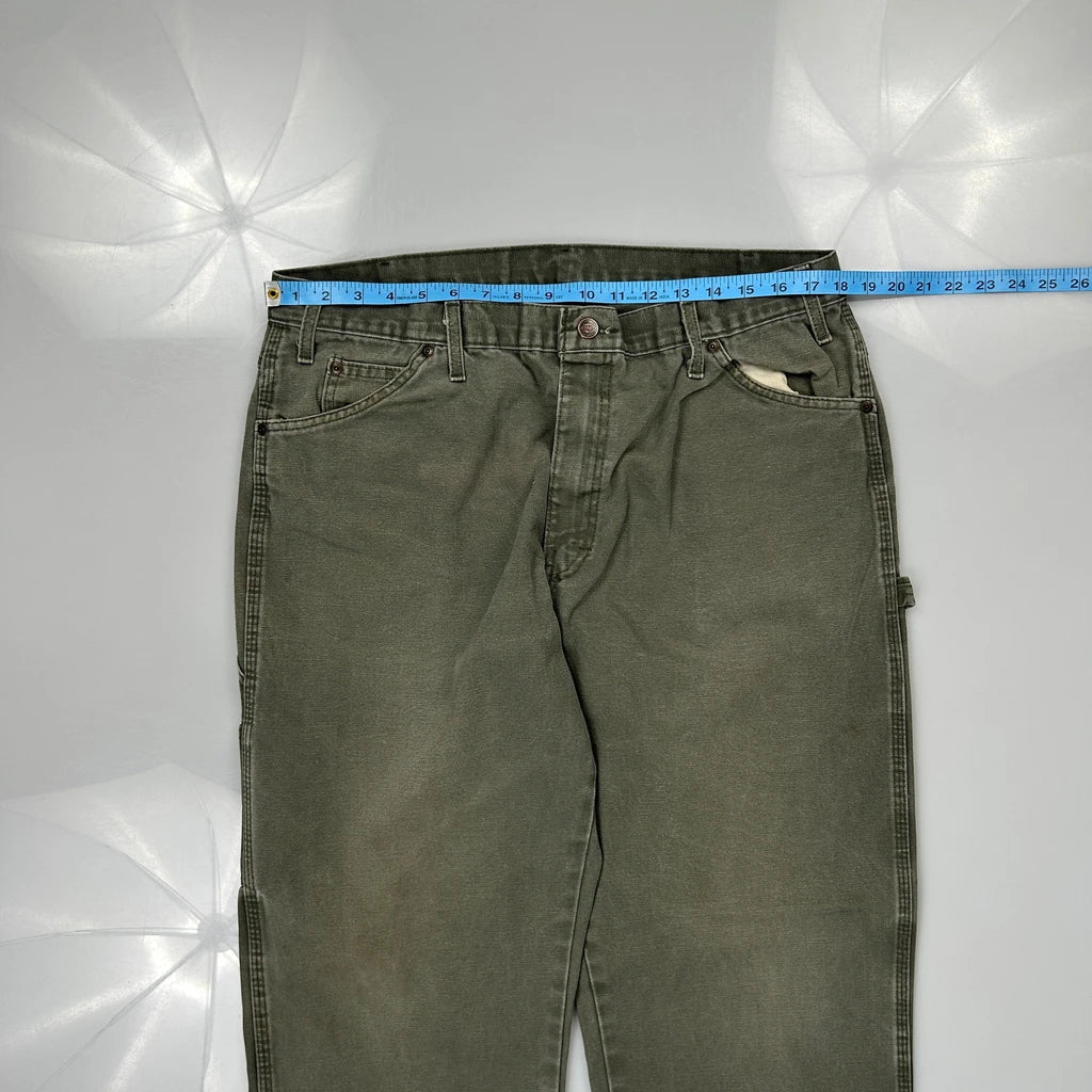 Dickies Carpenter Trousers, fit a 36″ Waist and 30″ inseam.