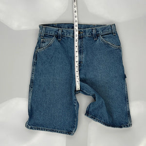 Dickies Denim Shorts, fit a 30″ Waist and 11″ inseam.