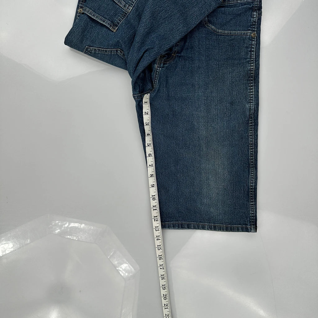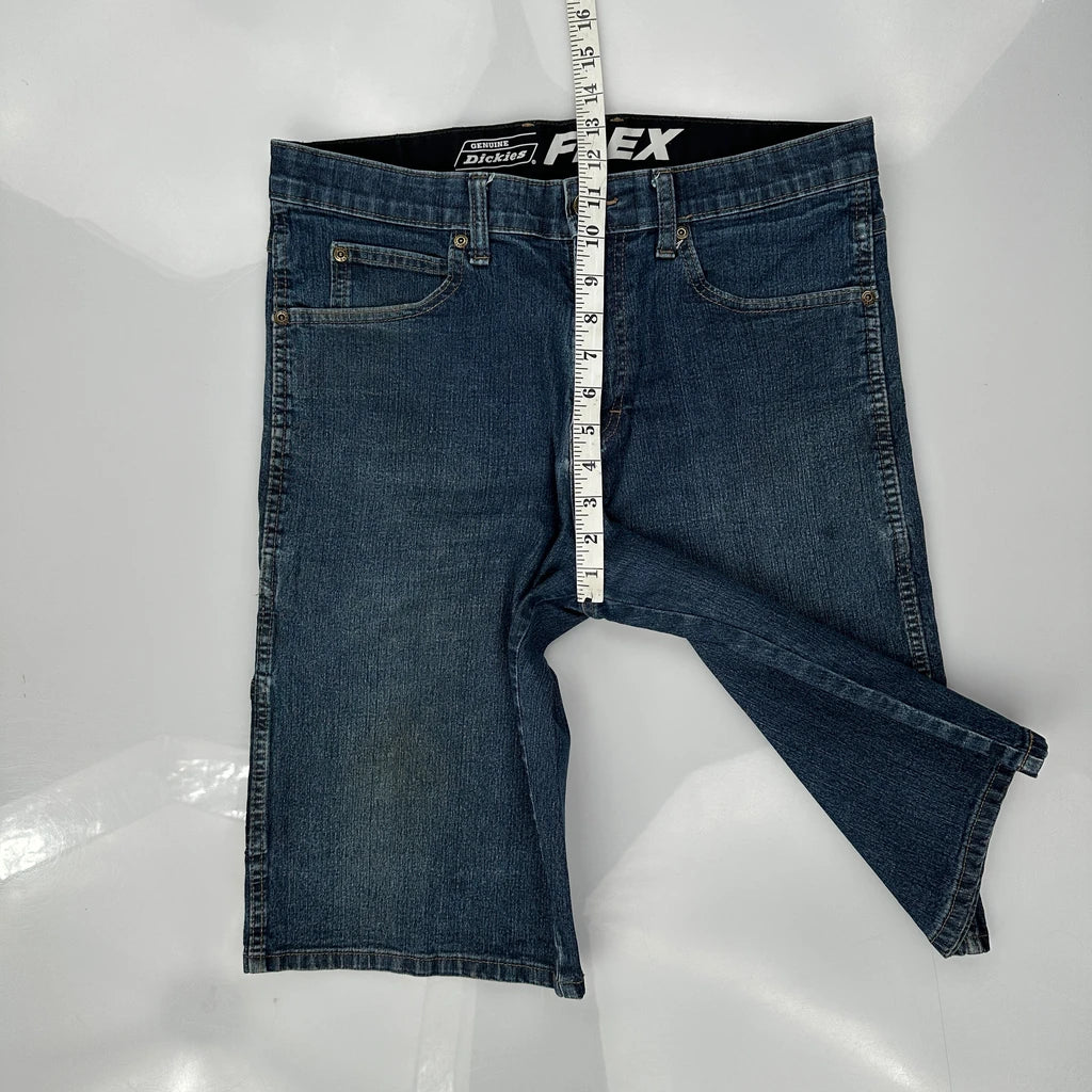 Dickies Denim Shorts, fit a 32″ Waist and 11″ inseam.