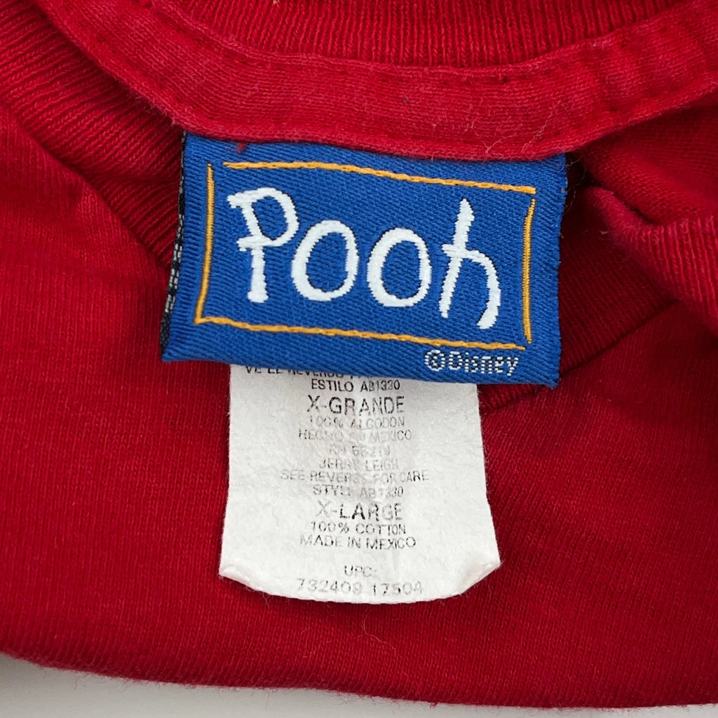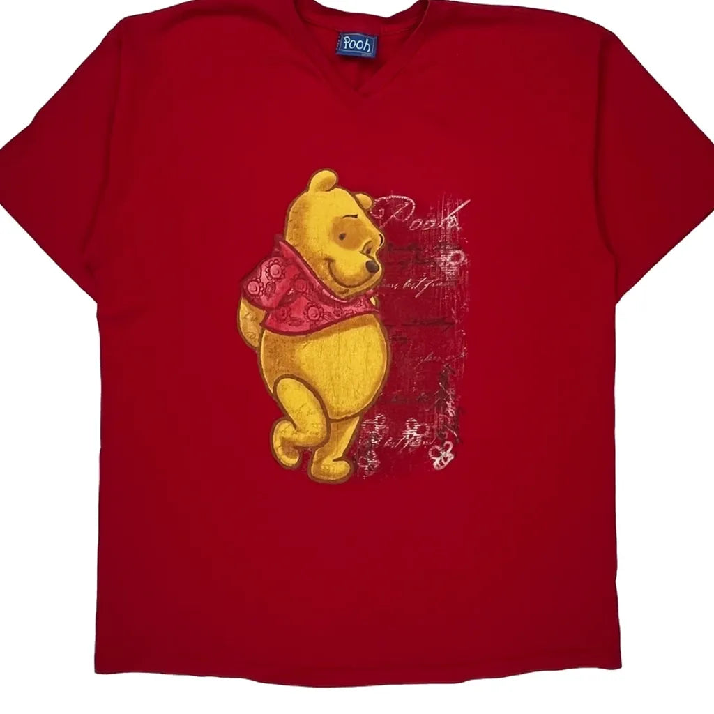 Red T-Shirt With Winnie The Pooh Graphic On The Front.