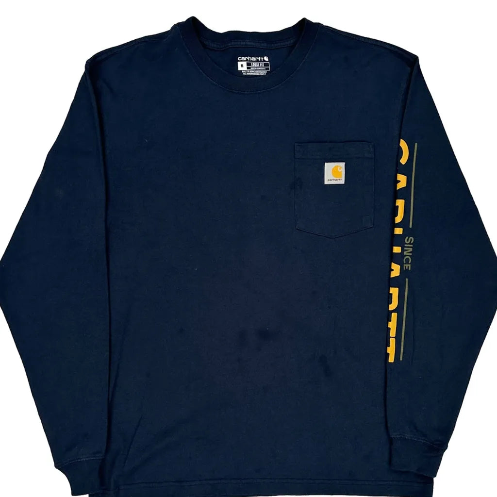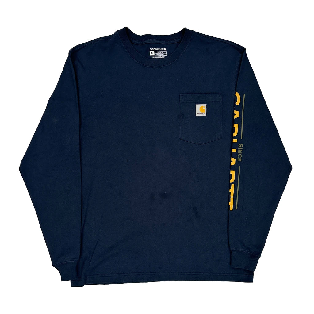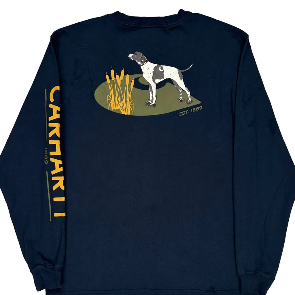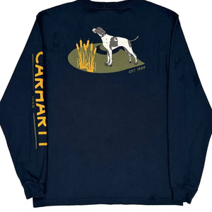 Dog Carhartt Graphic Long Sleeve T-Shirt - Medium Navy Cotton