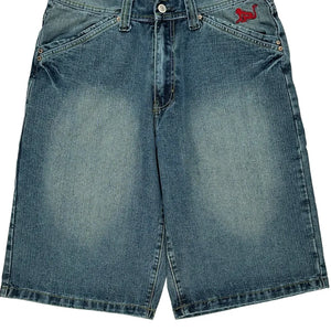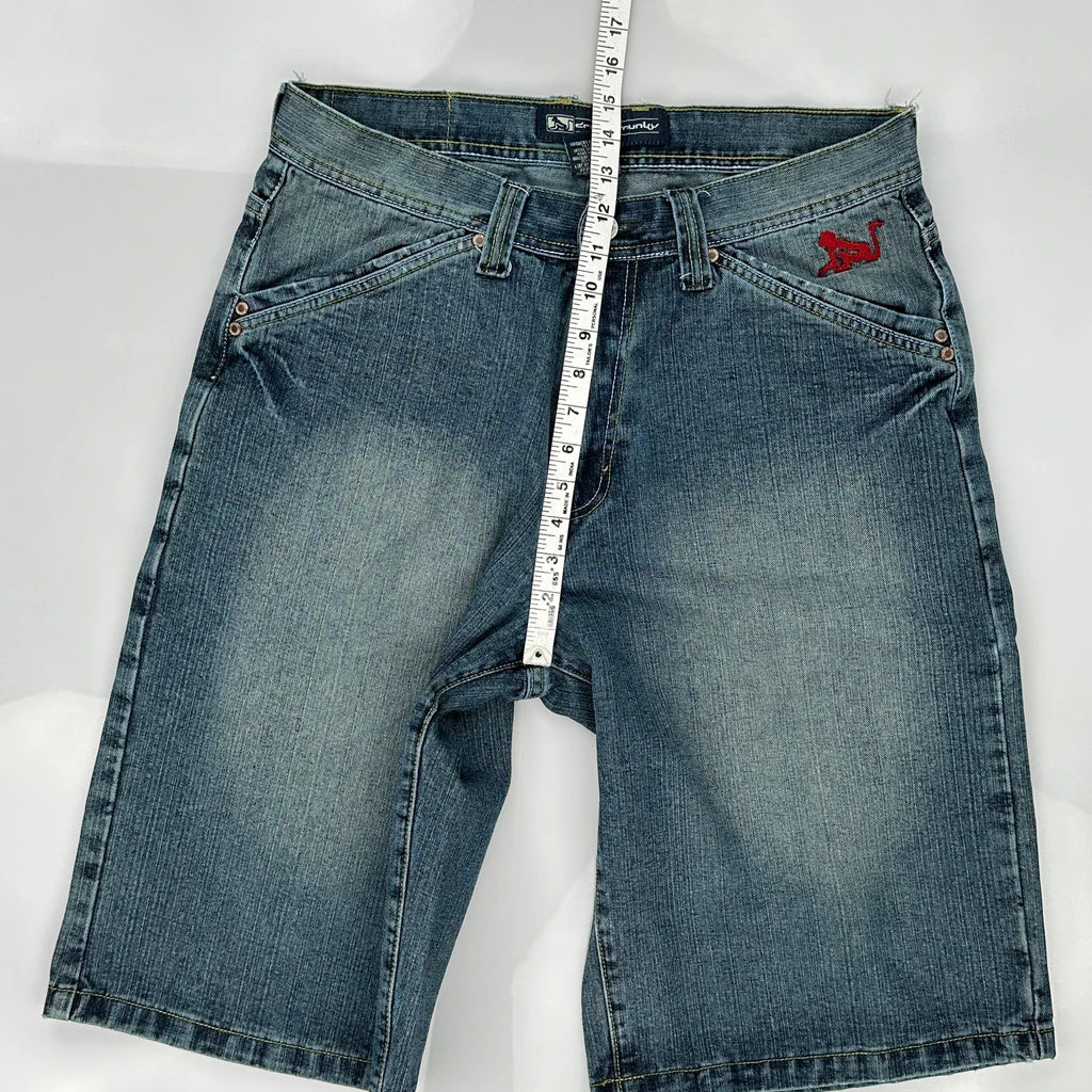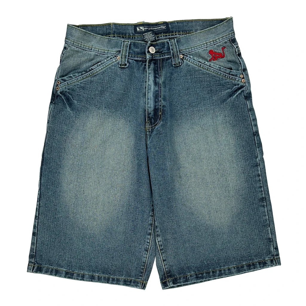 Drunknmunky Graphic Denim Shorts - 34W 14L Blue Cotton