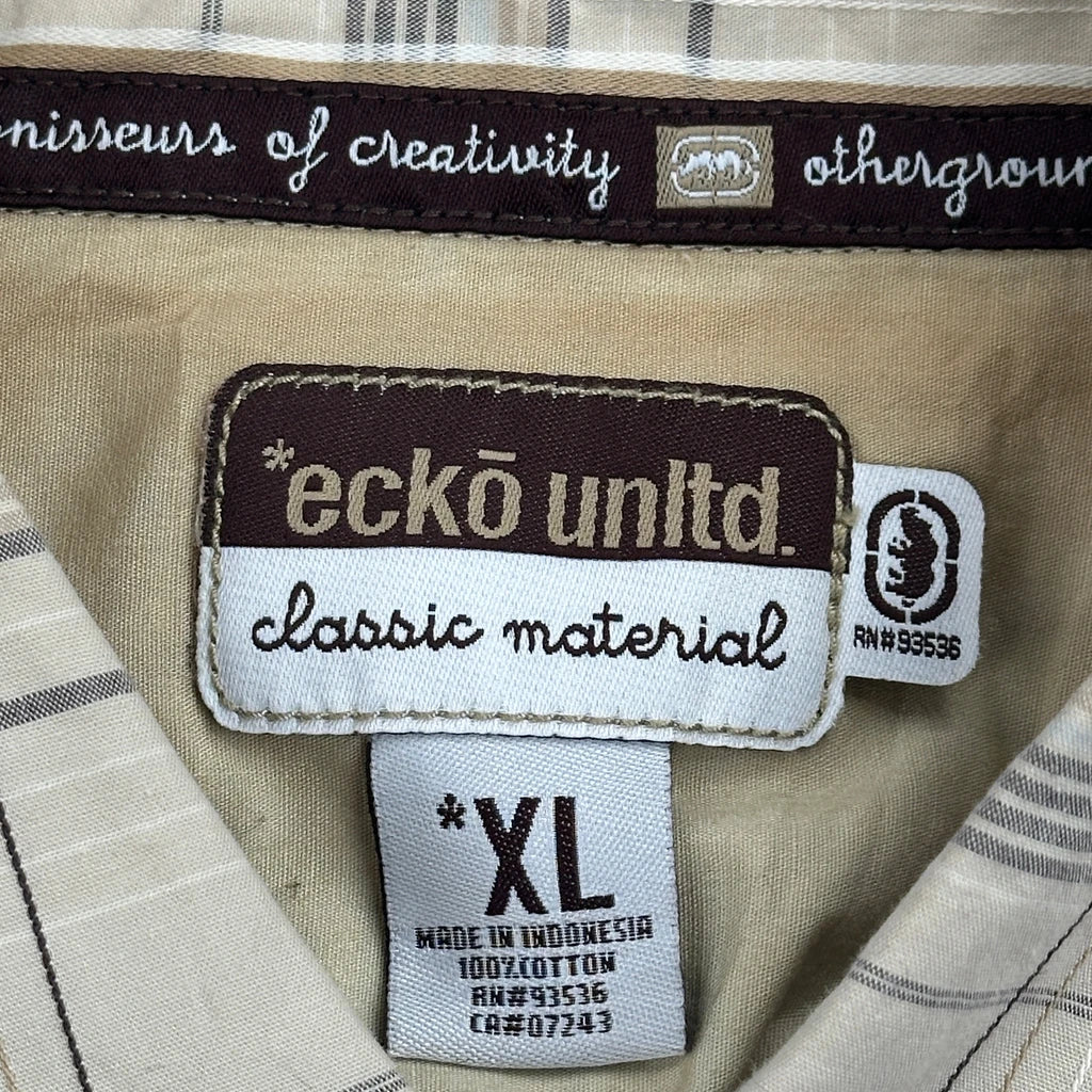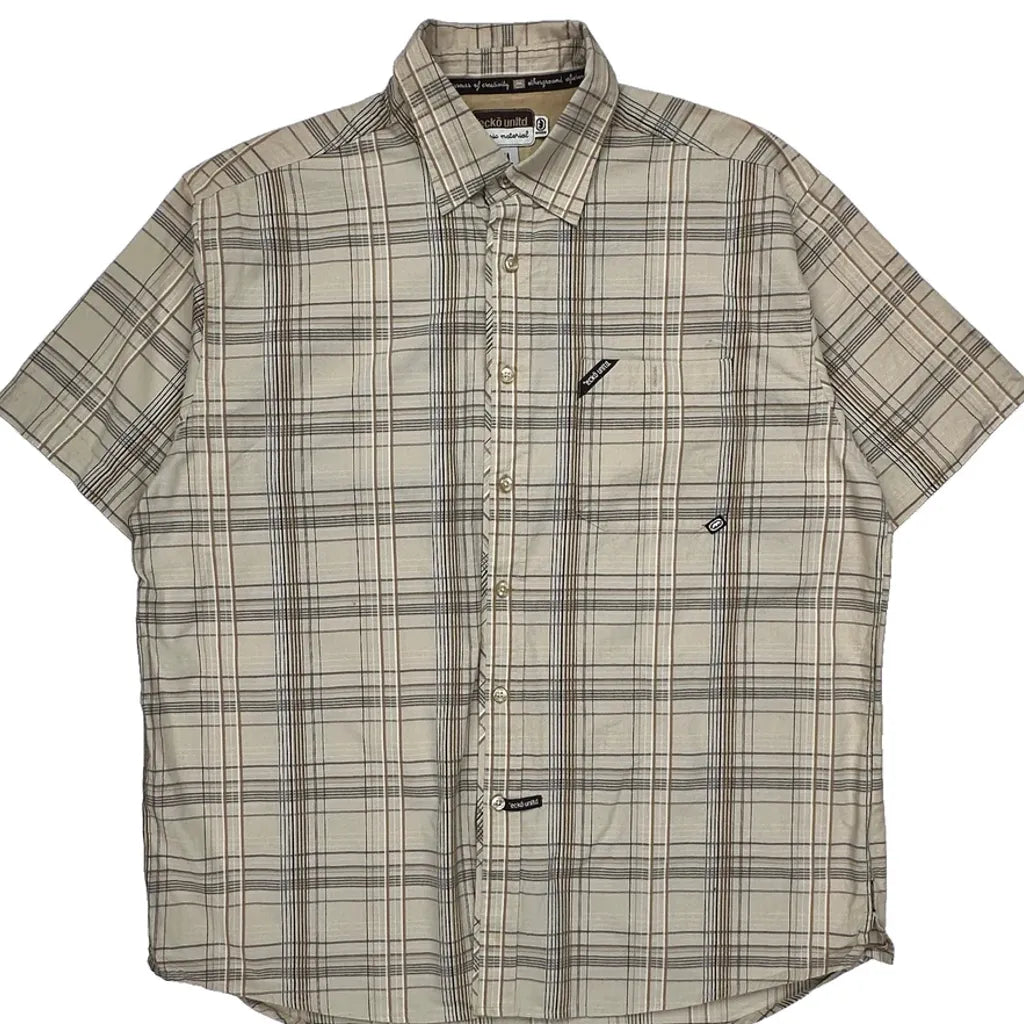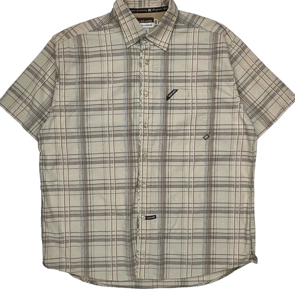 Ecko Unltd Checked Short Sleeve Shirt - XL Beige Cotton