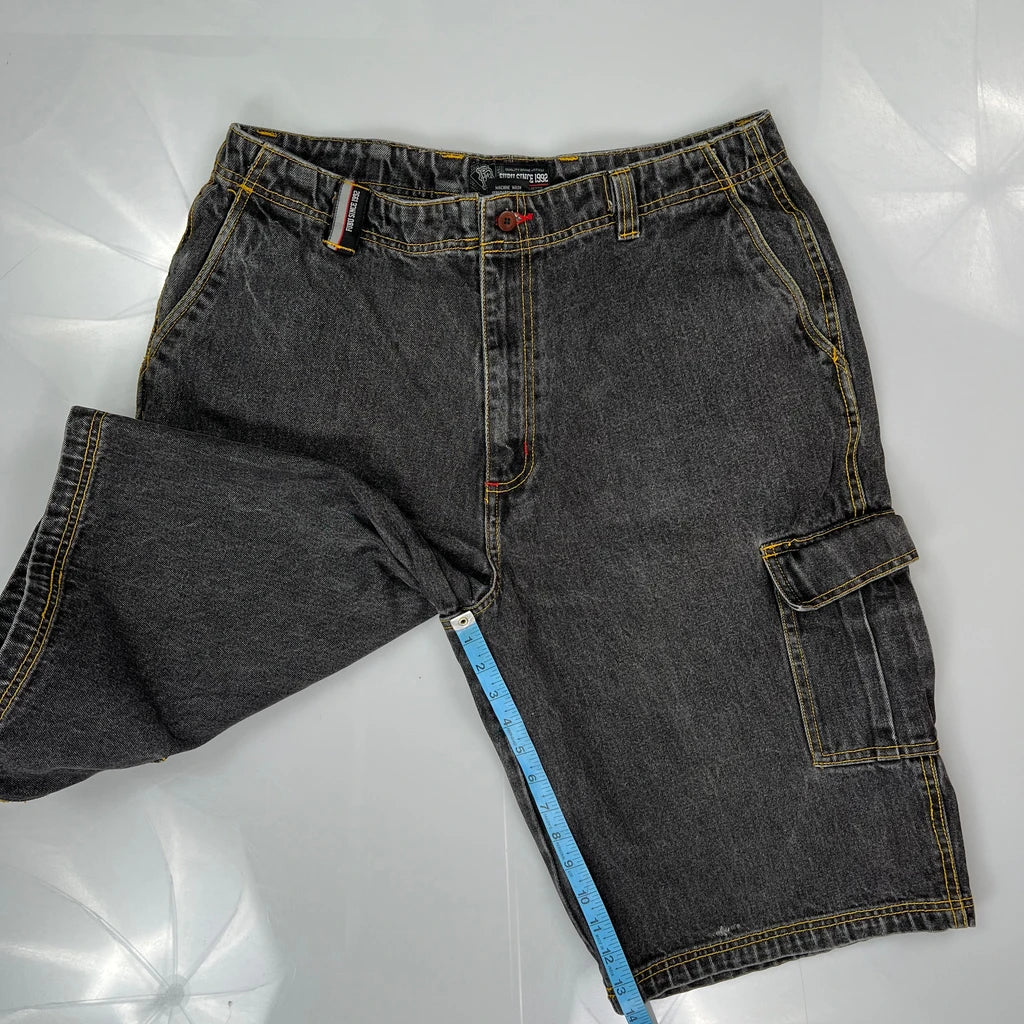 Fubu Cargo Denim Shorts - 34W 12L Grey Cotton