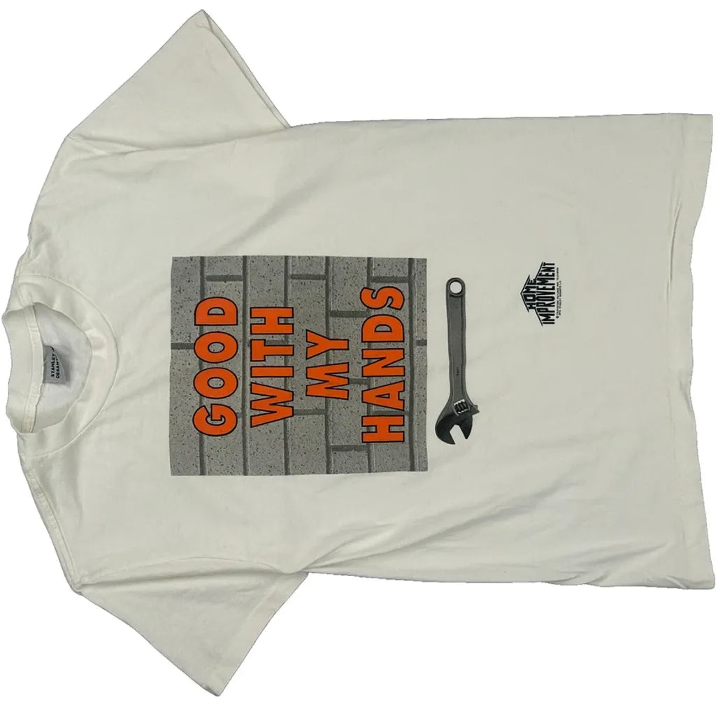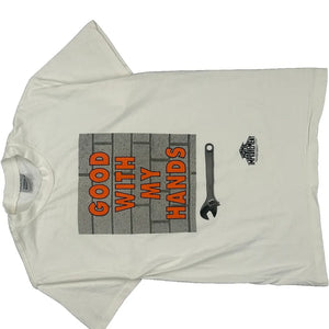 Good With My Hands Stanley Desantis Single Stitch T-Shirt - Large White Cotton