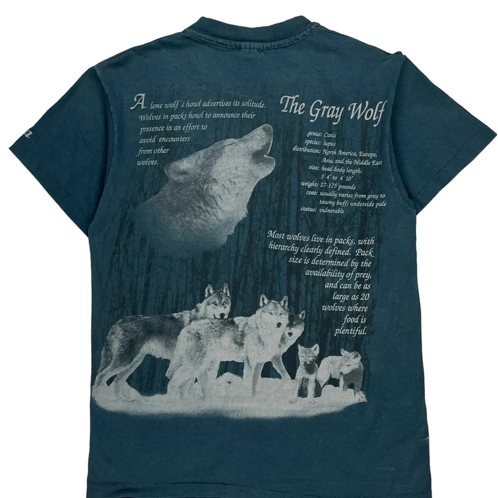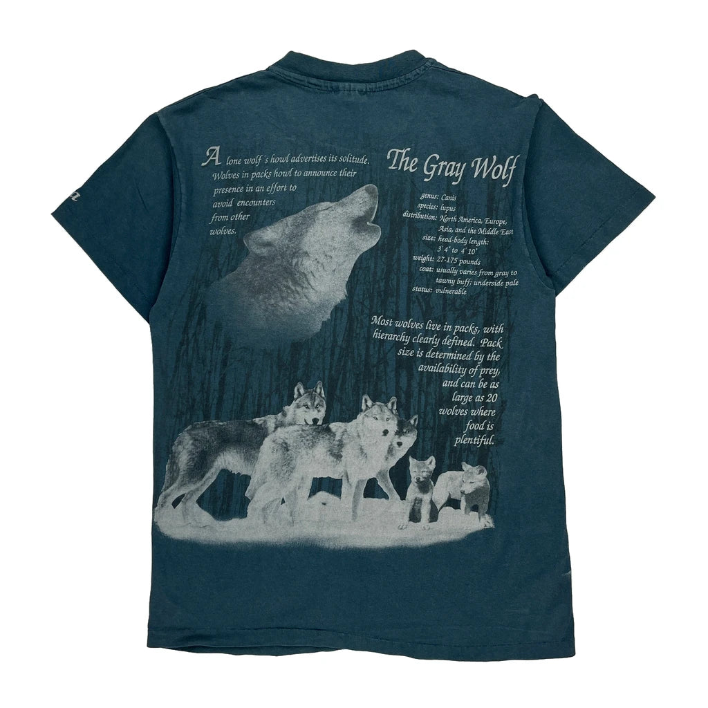 Features Gray Wolf Graphics And Text On Front And Back