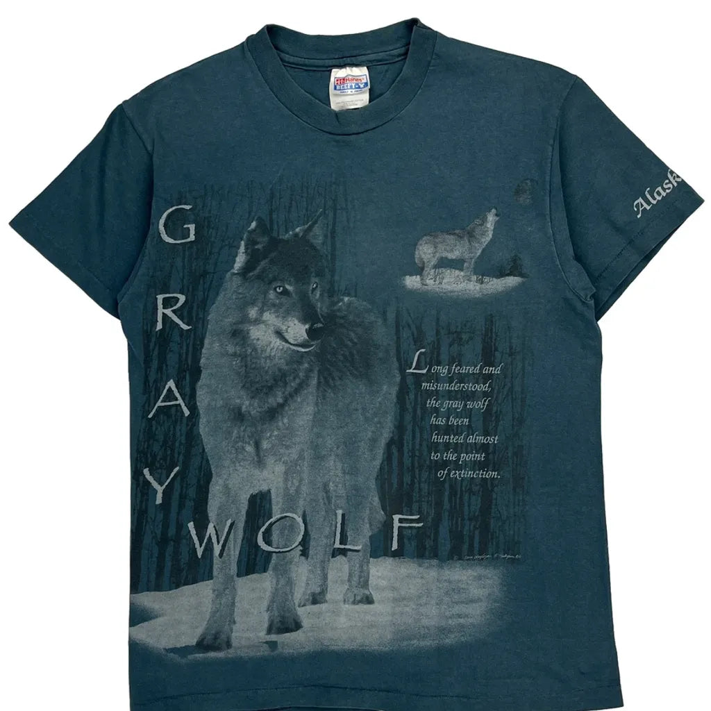 Gray Wolf Hanes Single Stitch T-Shirt - Medium Blue Cotton