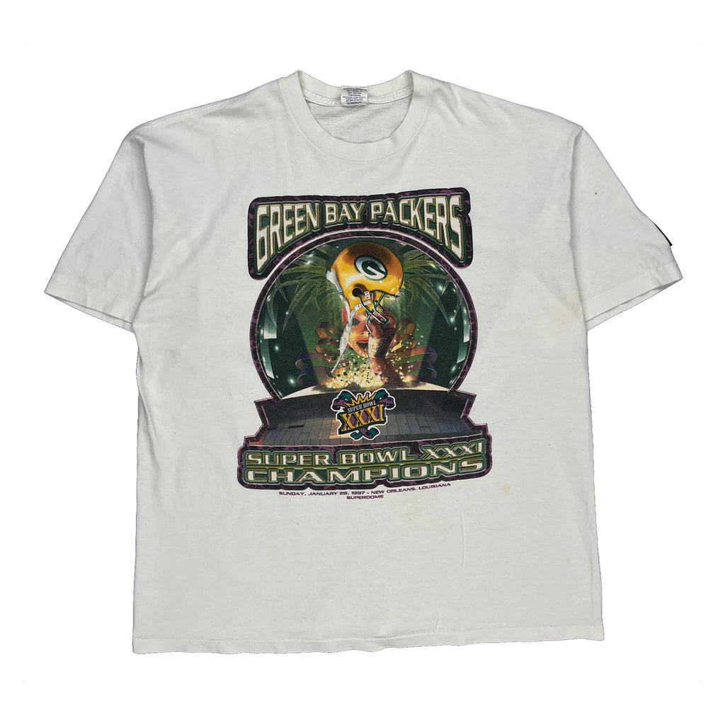 Green Bay Packers Starter Nfl T-Shirt - Large White Cotton