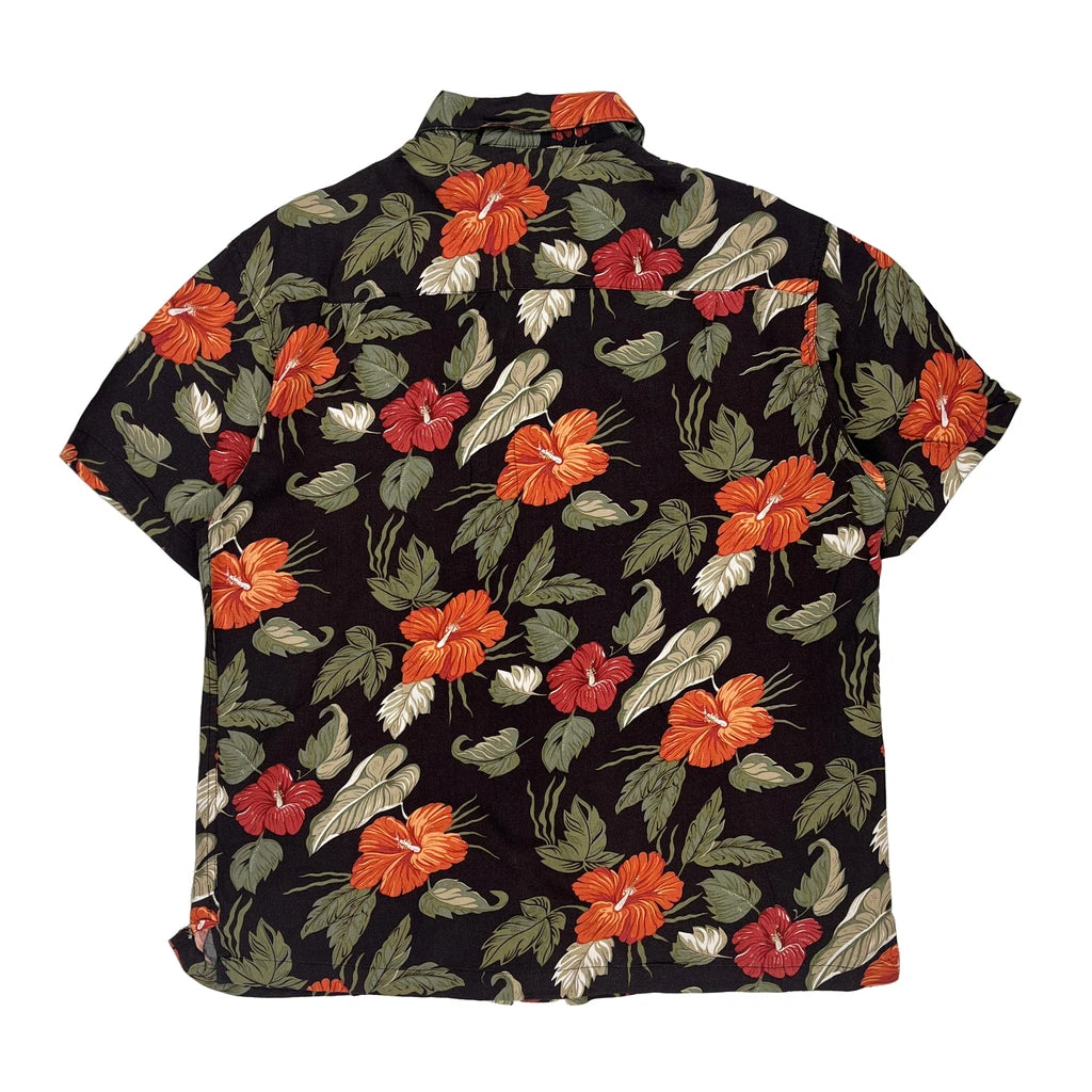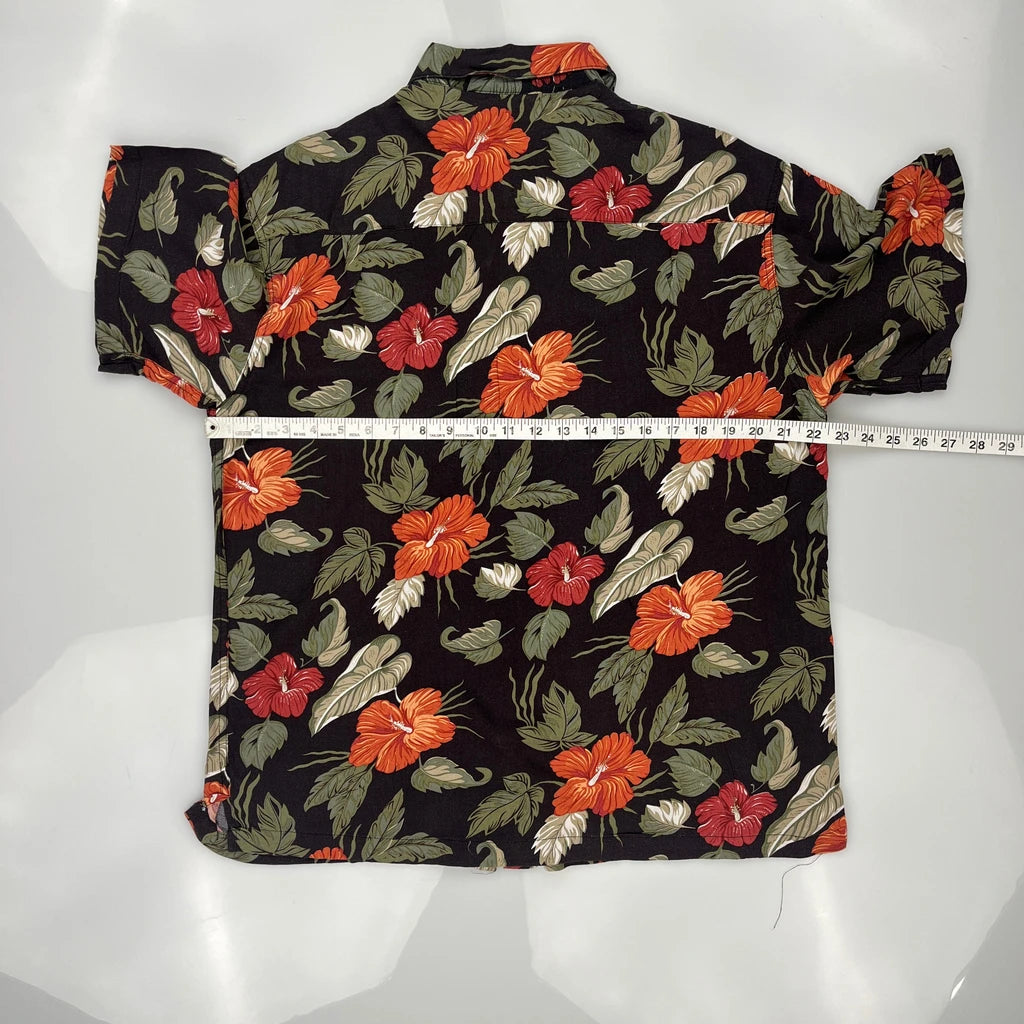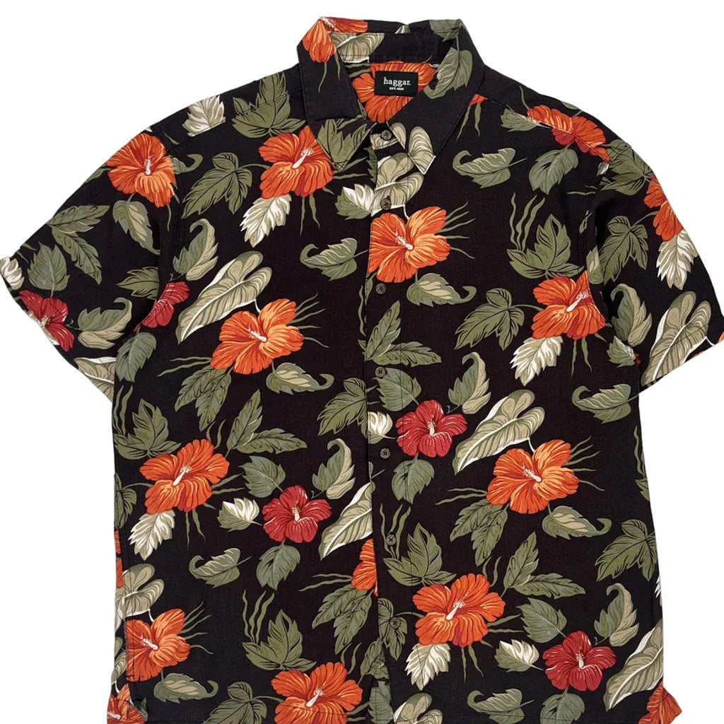 Haggar Floral Hawaiian Shirt - Large Black Cotton