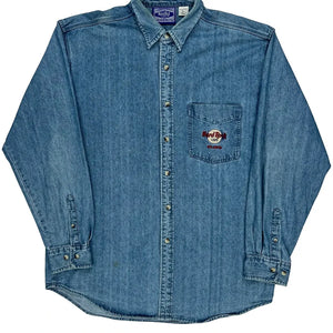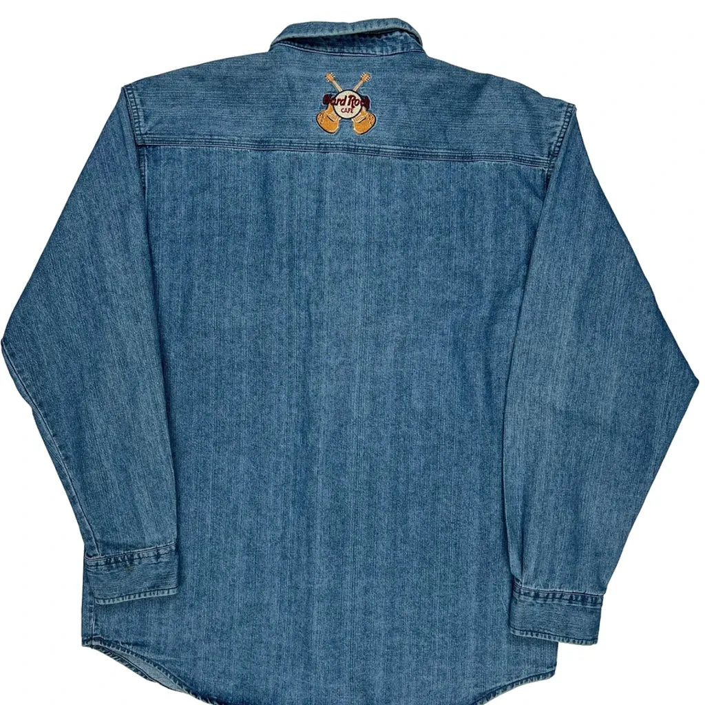 Hard Rock Cafe Graphic Denim Shirt - Large Blue Cotton