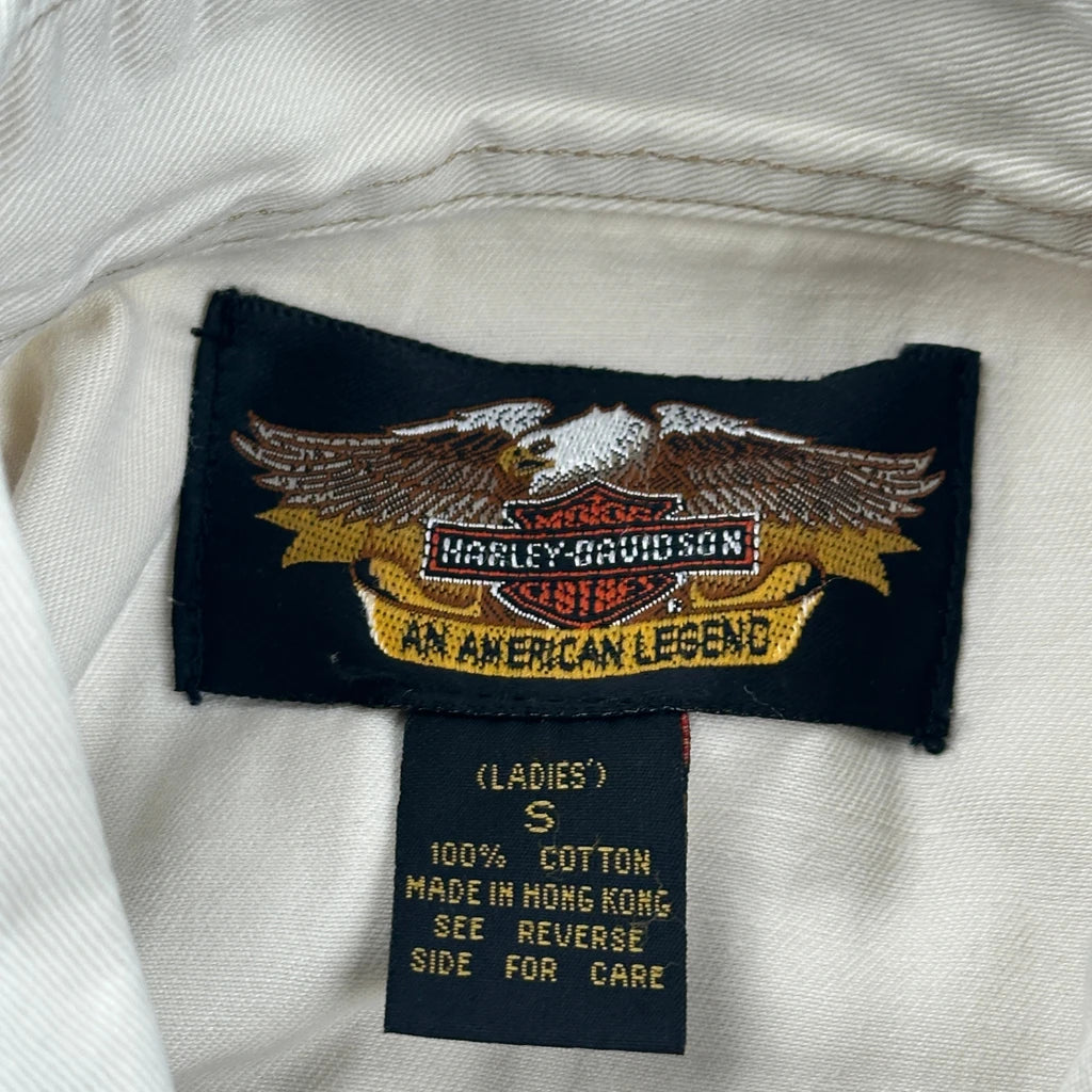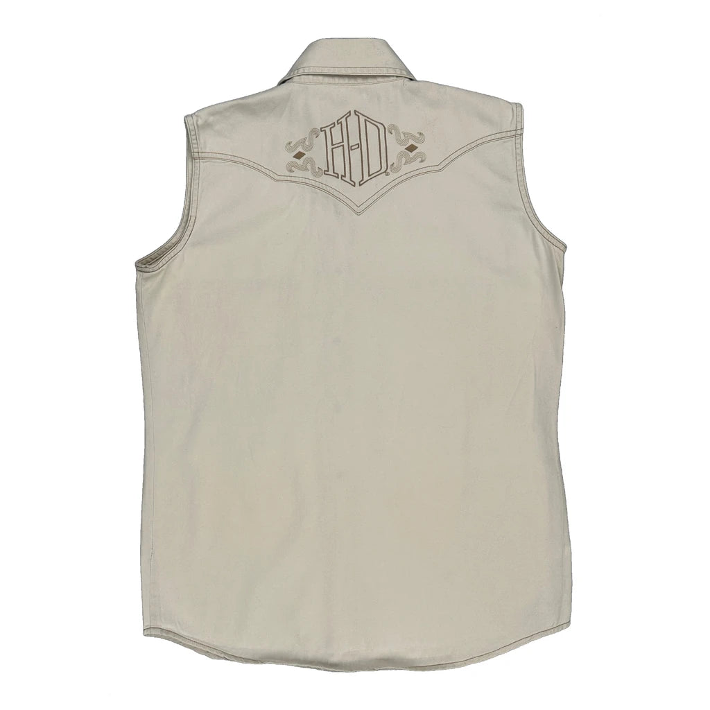 Harley Davidson Denim Shirt - Small Cream Cotton