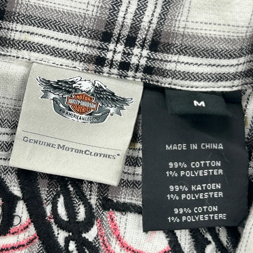 Harley Davidson Checked Shirt - Medium Black & White Cotton