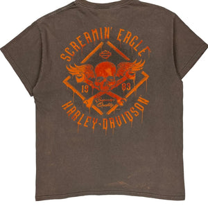 Harley Davidson Graphic T-Shirt - Large Brown Cotton