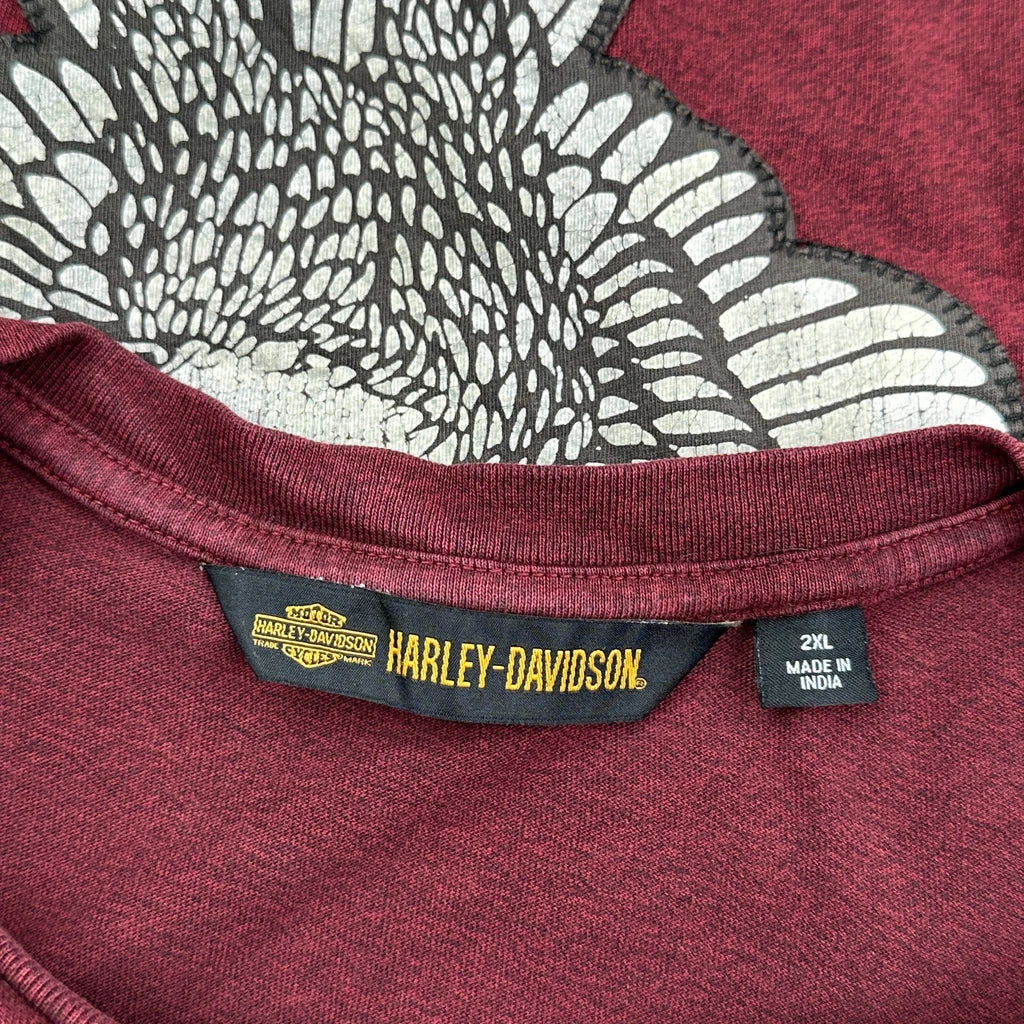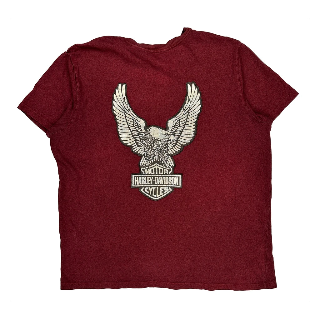 Harley Davidson Graphic T-Shirt - 2XL Burgundy Cotton